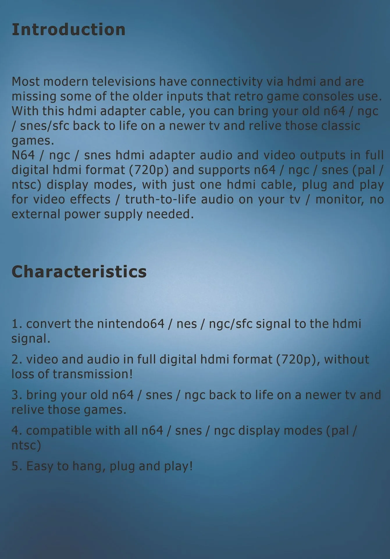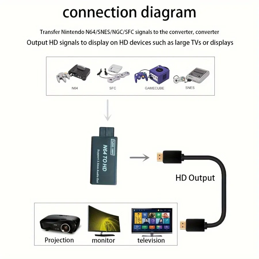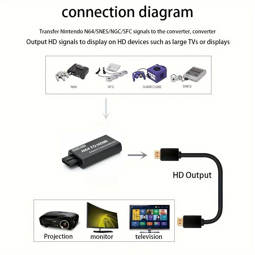 Suitable for N64 / NES / NGC to HDMI-compatible signal.