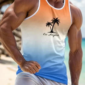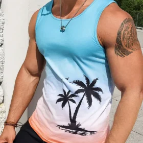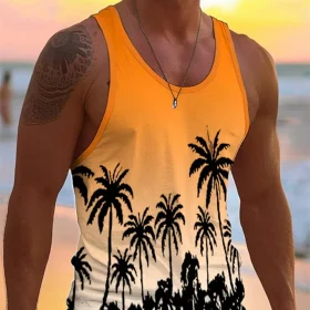 Summer Man Vest Hawaiian Beach Style Coconut Tree Print Sleeveless Shirts Casual O-neck Loose Tees Fashion Loose Men’s Tank Tops