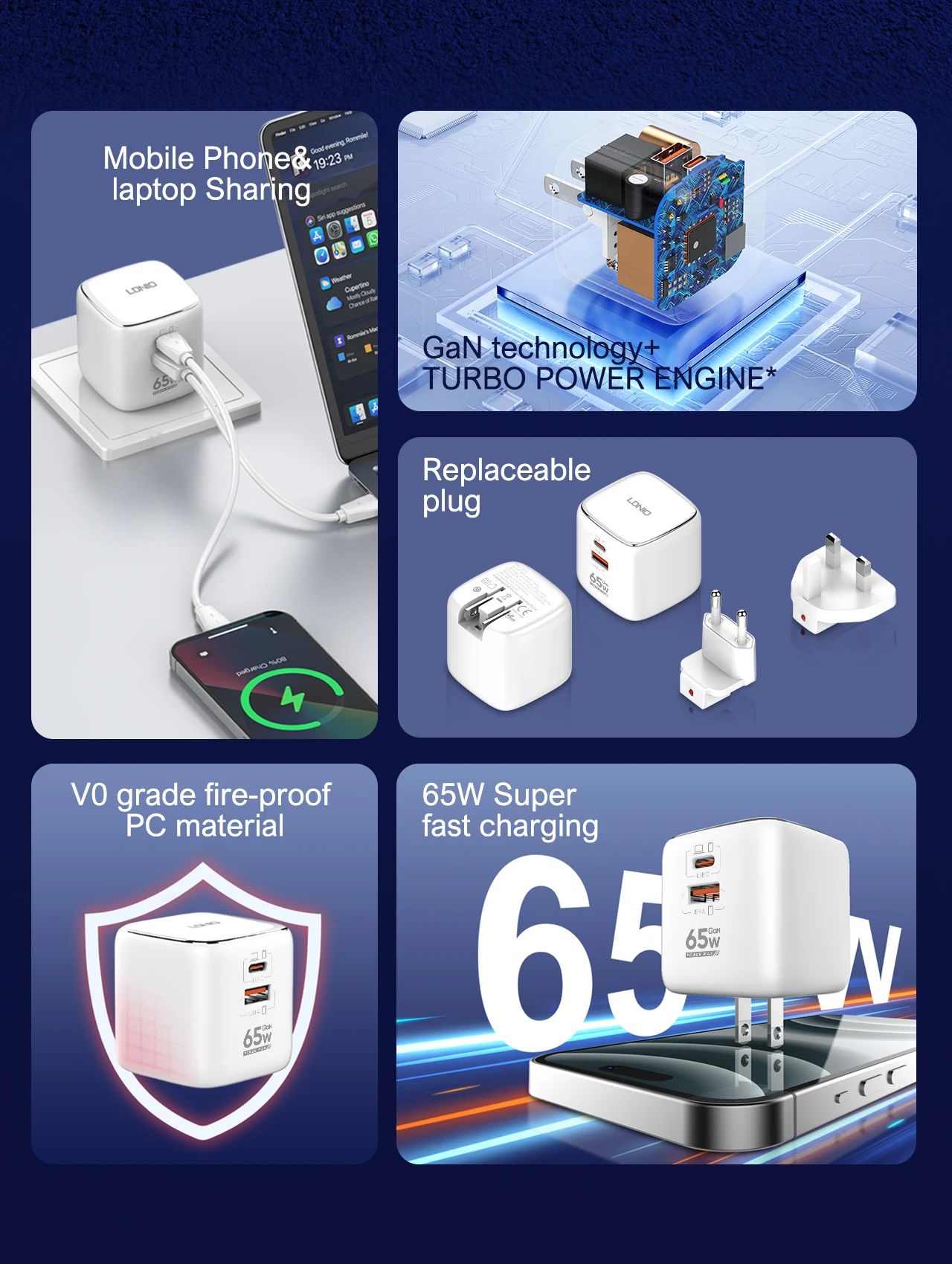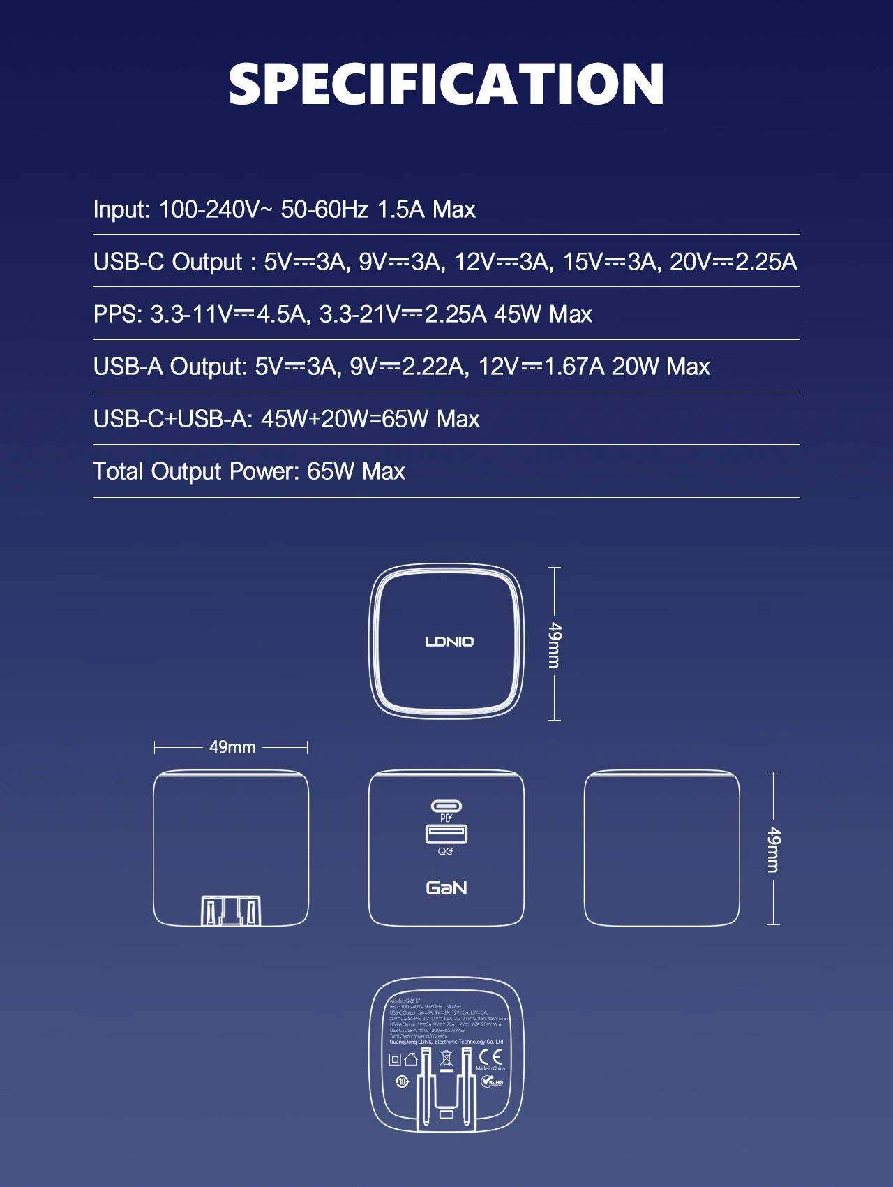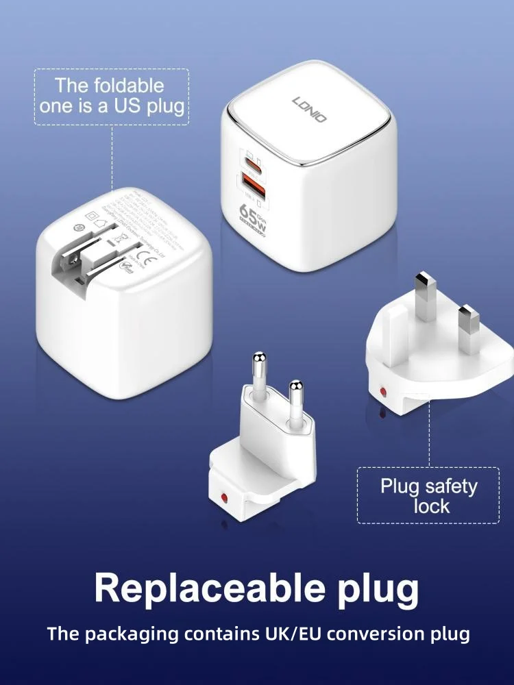 LDNIO Gan 65w Fast Charger Us Uk Eu Plug High Speed Charge