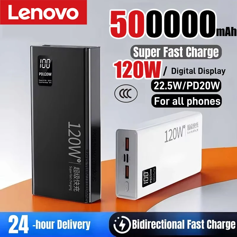 Lenovo 120W Power Bank 500000mAh High Capacity Fast Charging Powerbank Portable Battery Charger For iPhone Samsung Xiaomi Hot