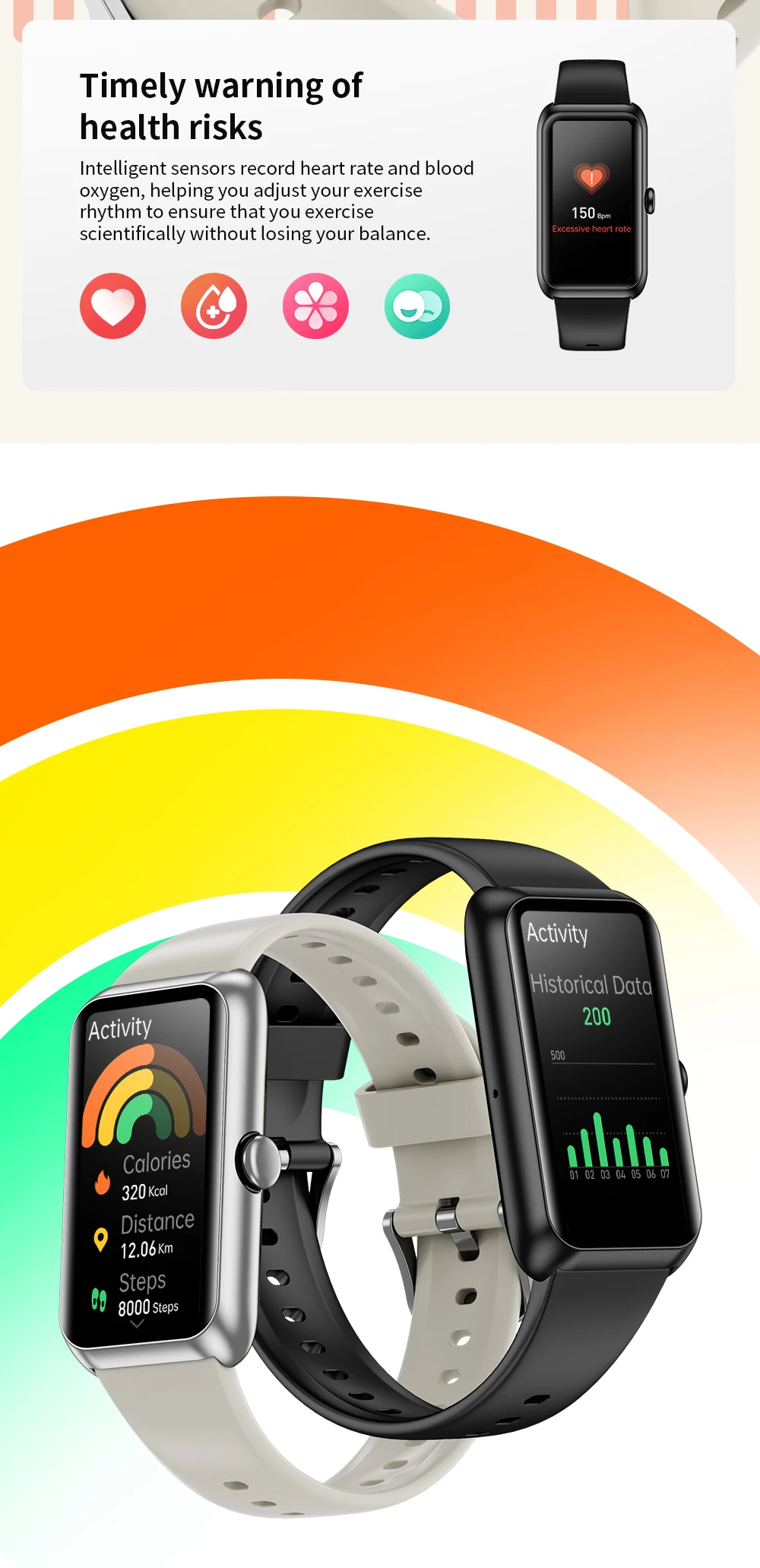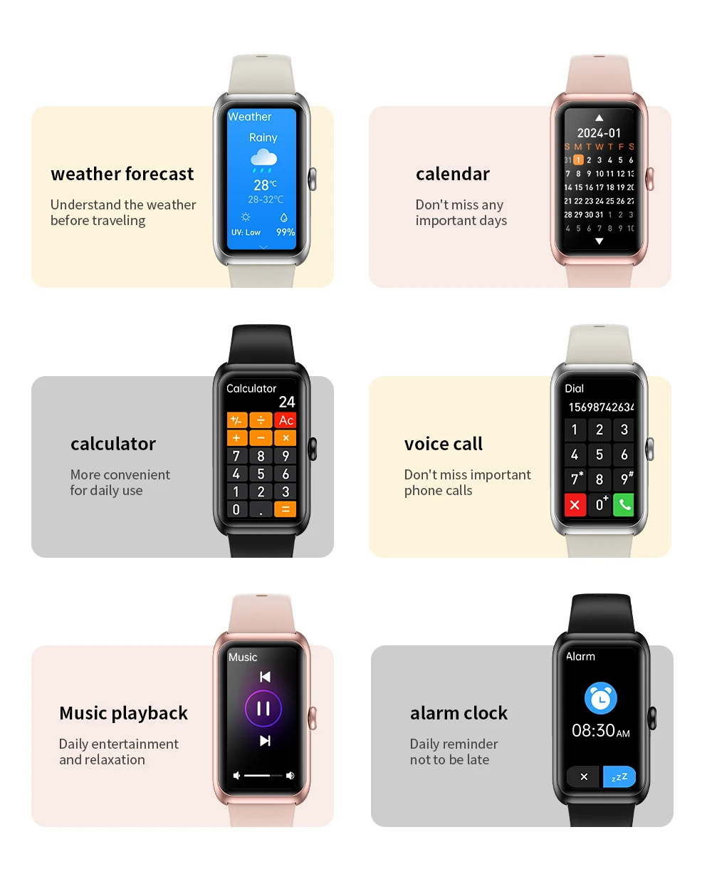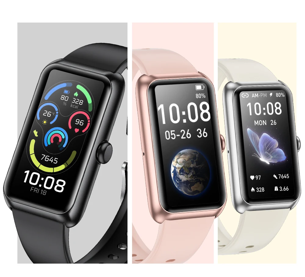 ▶Basic functions of firmware: exercise, status, heart rate, blood oxygen, sleep, weather, music control, breathing training, information, stopwatch, find phone, timer, brightness, bright screen duration, dial switching, female health