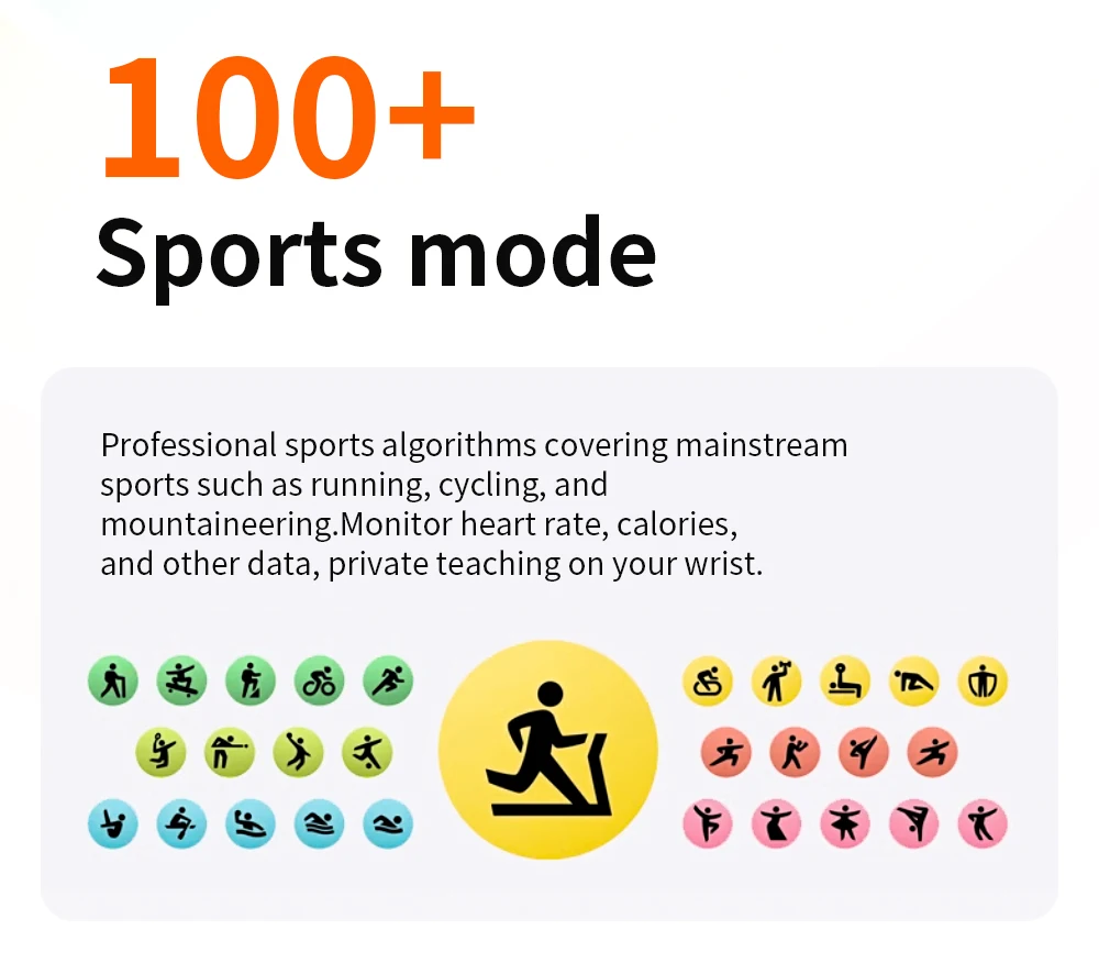 ▶Multi-sport modes: walking, running, cycling, badminton, skipping rope, basketball, football, yoga, etc. 100+ sports modes