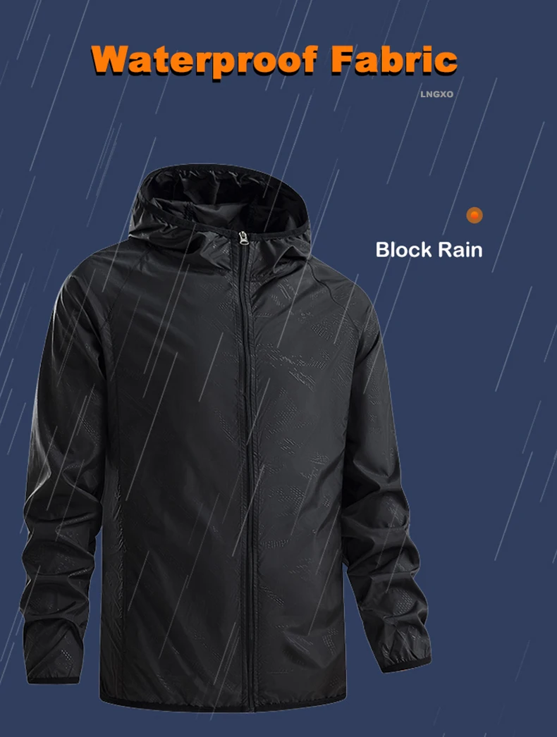 3. Waterproof Fabric: Lotus Leaf Waterproof Technology,You’ll stay dry with this quick-drying, water-repellent jacket. With its snug fit, hood, cinched-in sleeve ends and full-length zip, this waterproof will keep your other clothes and your skin from getting damp while you’re out and about.