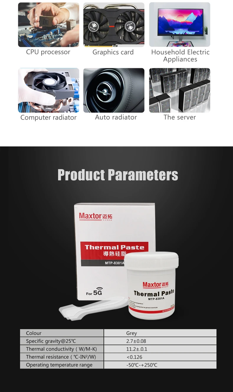 These characteristics effectively dissipate the heat dissipation of the core components. Its texture is only delicate enough to be spread with fingers in the components without causing too much confusion.