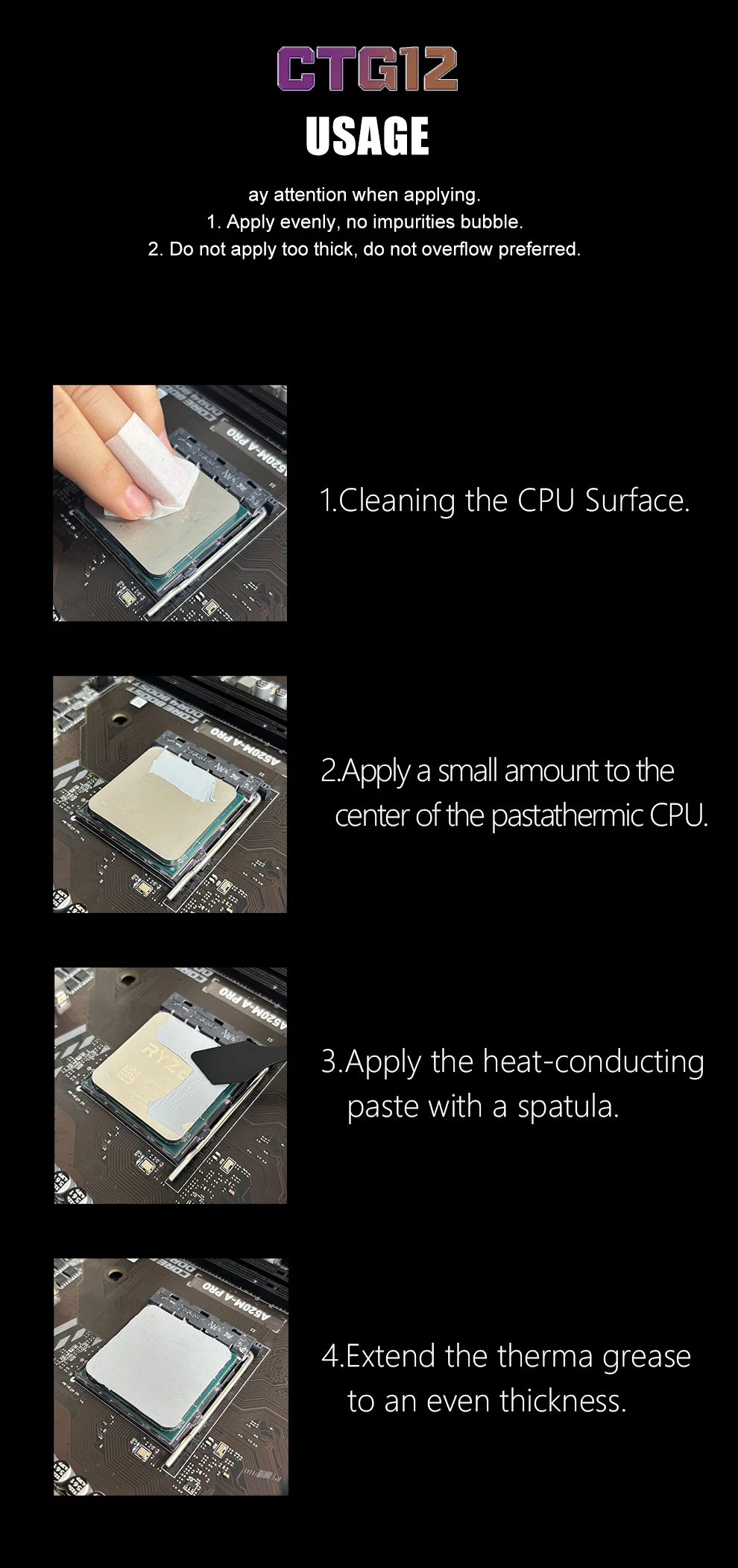 2.Apply thermal conductive silicone grease at the center of the CPU/GPU surface.