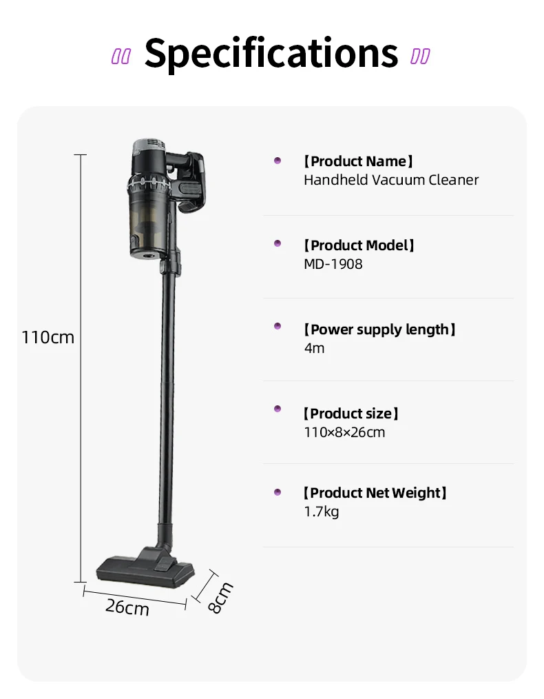 Product accessories : host 1pcs, floor brush 1pcs,crevice brush 1pcs,instructions 1pcs