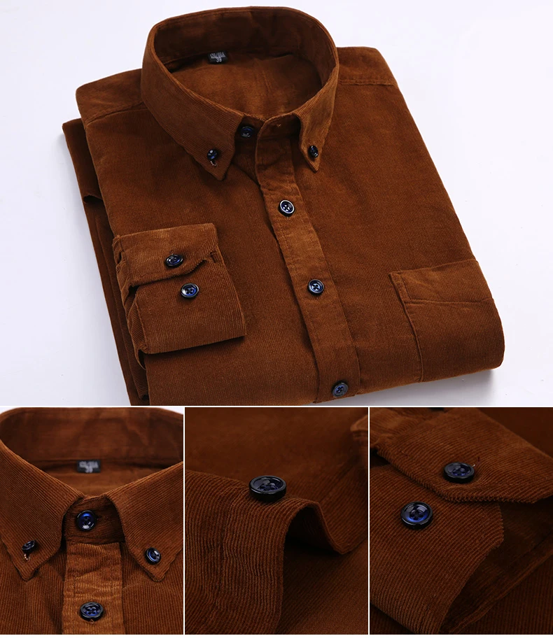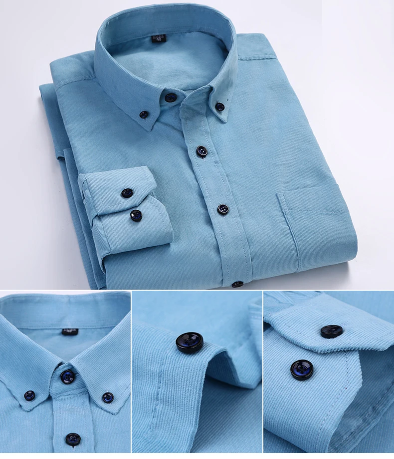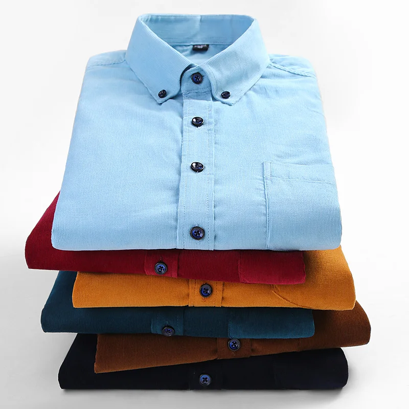 Men Casual Shirts Soft Leisure Solid Regular Fit Cotton Corduroy Long Sleeved Warm Man’s Shirt New Easy Care Oversized Clothes