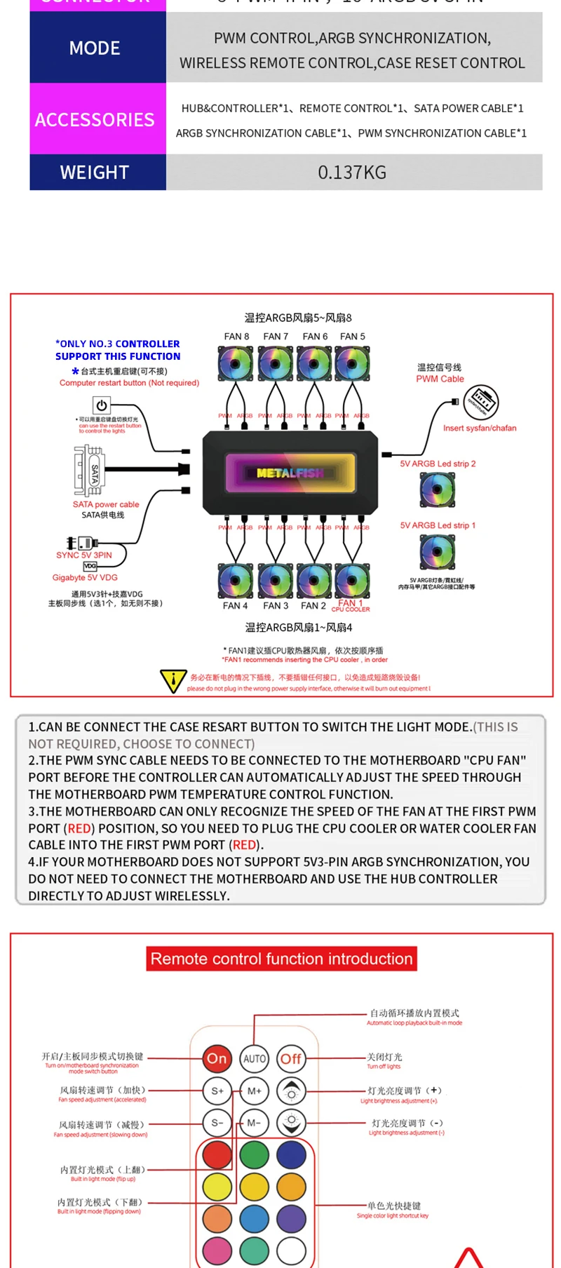 -Built-in ARGB function,support remote control