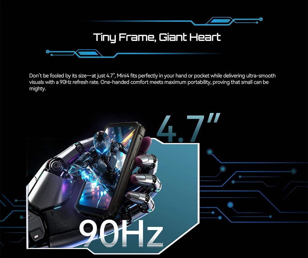 Don’t be fooled by its size—at just 4.7″, Mini4 fits perfectly in your hand or pocket while delivering ultra-smooth visuals with a 90Hz refresh rate. One-handed comfort meets maximum portability, proving that small can be mighty.