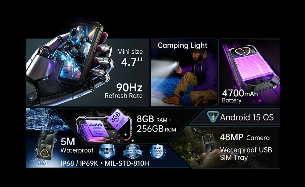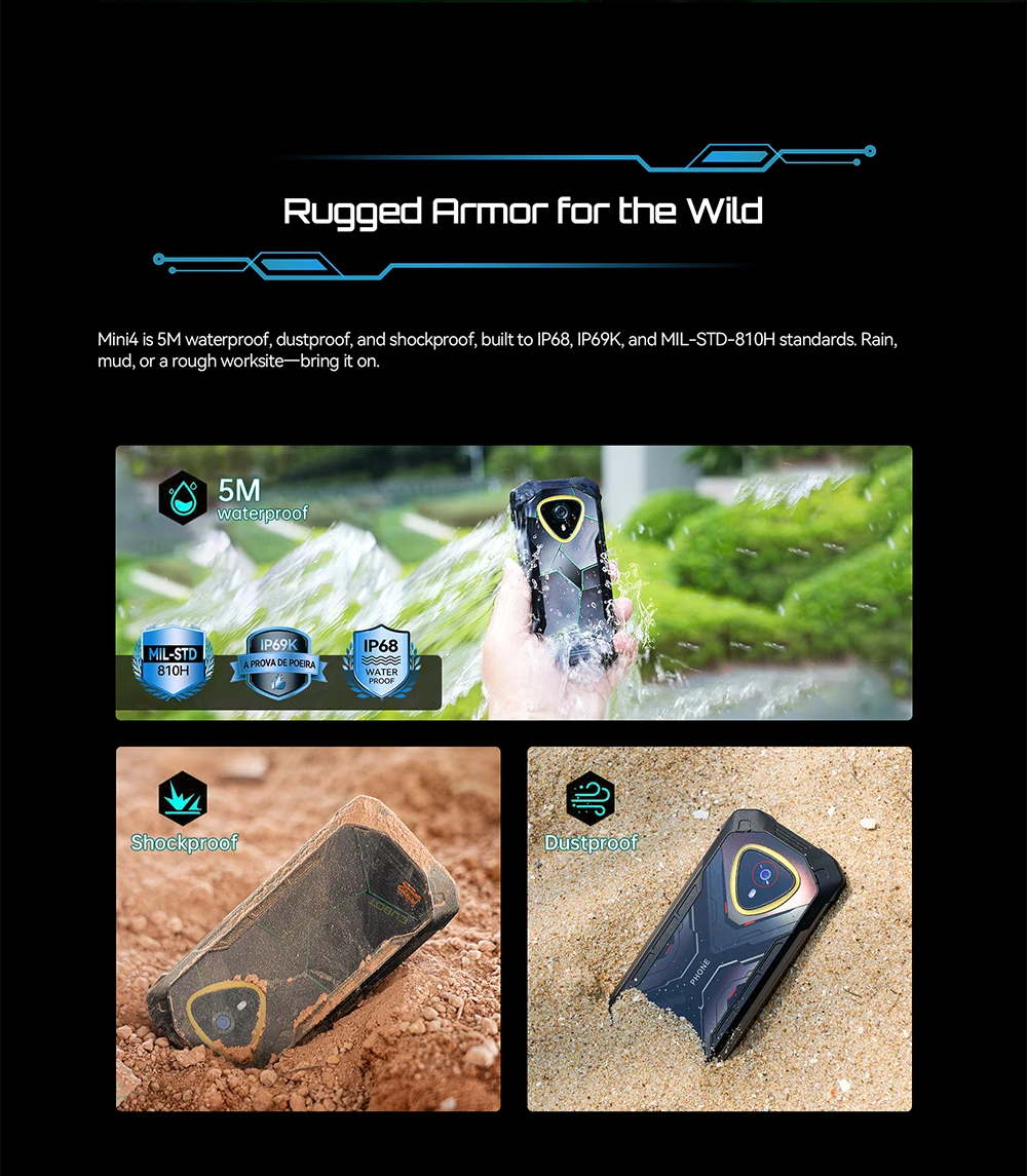 Bigger isn’t always better. Traditional phones are bulky, fragile, and drain quickly. Rugged phones often sacrifice style and portability. Mini4 slips into your life like a glove: compact yet mighty, stylish yet tough, ready for any adventure.