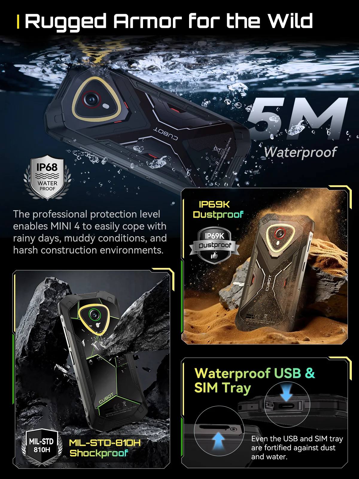 Even the USB and SIM tray are fortified against dust and water. No interruptions, no compromises—just reliable performance in any environment.