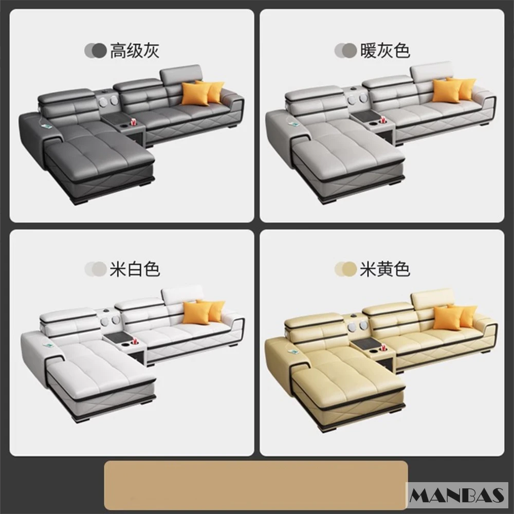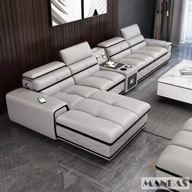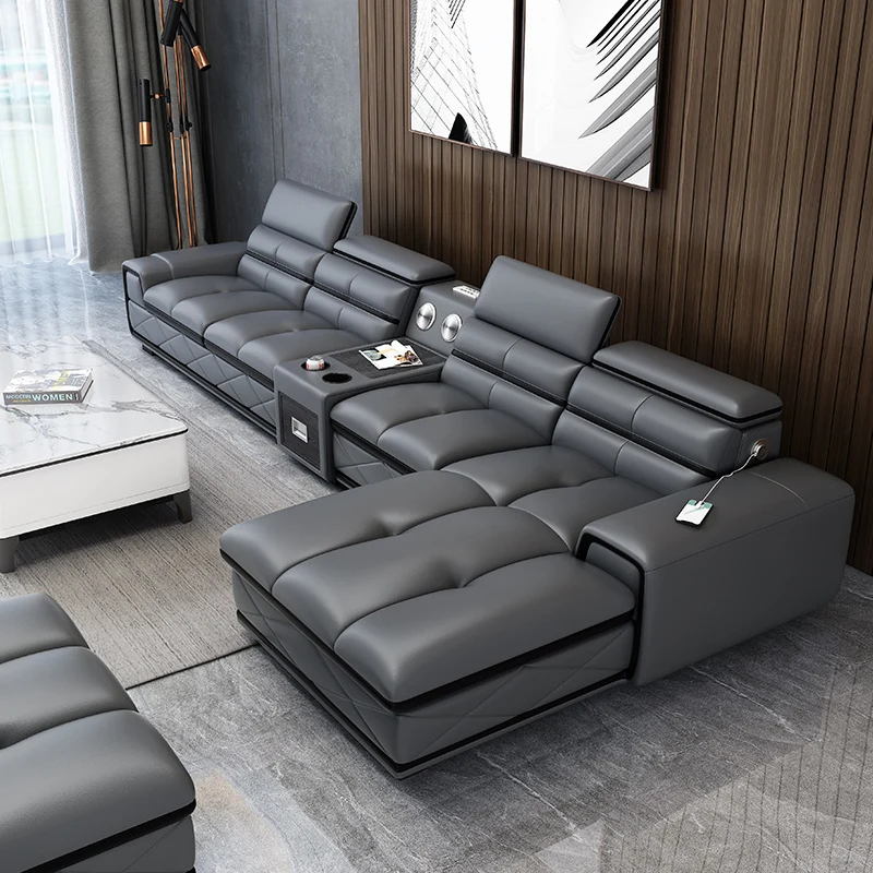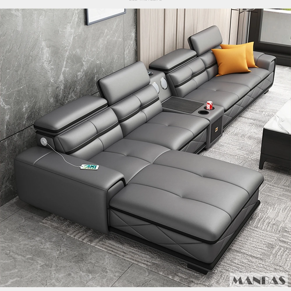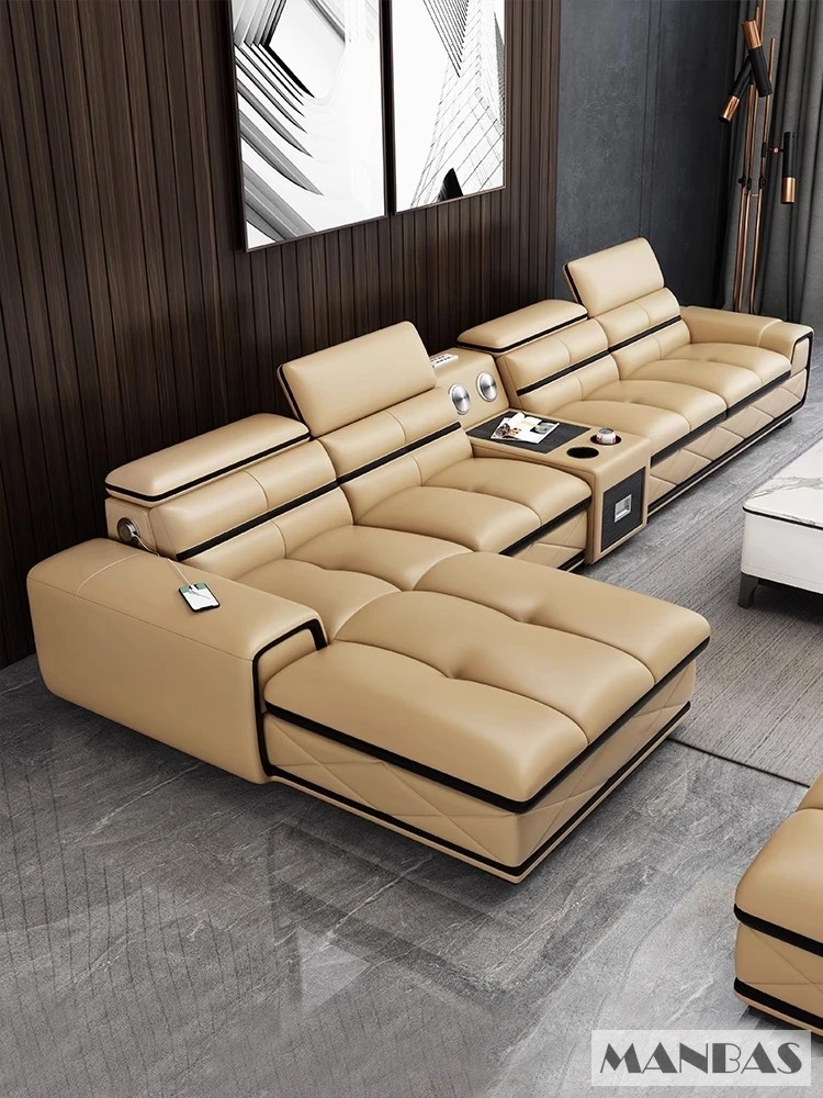 Comfortable Italian Genuine Leather Sectional Sofa Sets Couch with USB Charging and Bluetooth Speaker – MINGDIBAO Living Room Furniture
