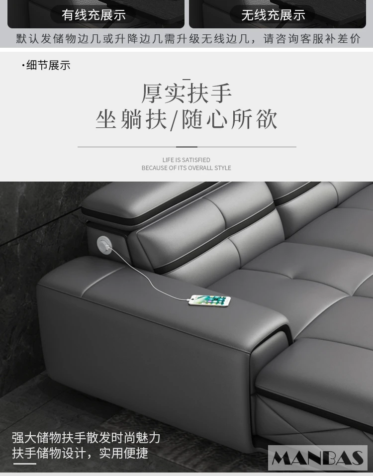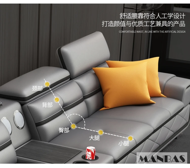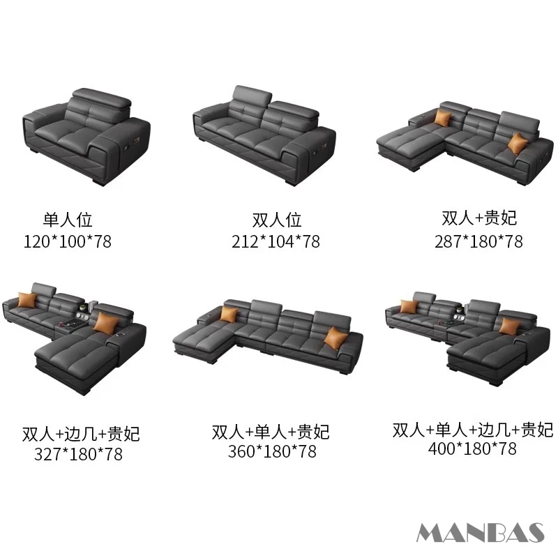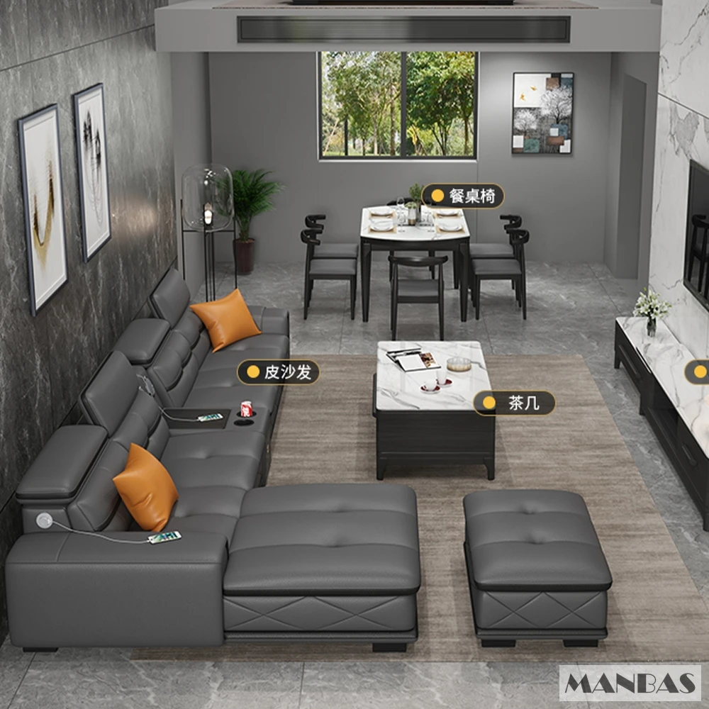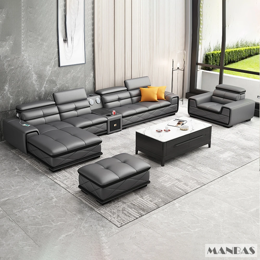 Comfortable Italian Genuine Leather Sectional Sofa Sets Couch with USB Charging and Bluetooth Speaker – MINGDIBAO Living Room Furniture