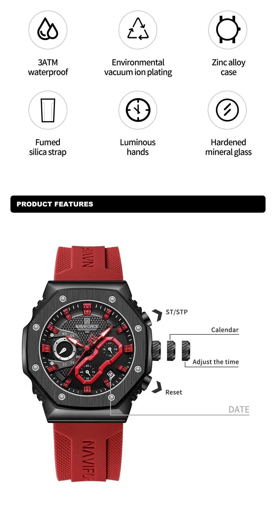 - Feature: Shock Resistant,Auto Date,Complete Calendar,Water-Resistance,Luminous Hands