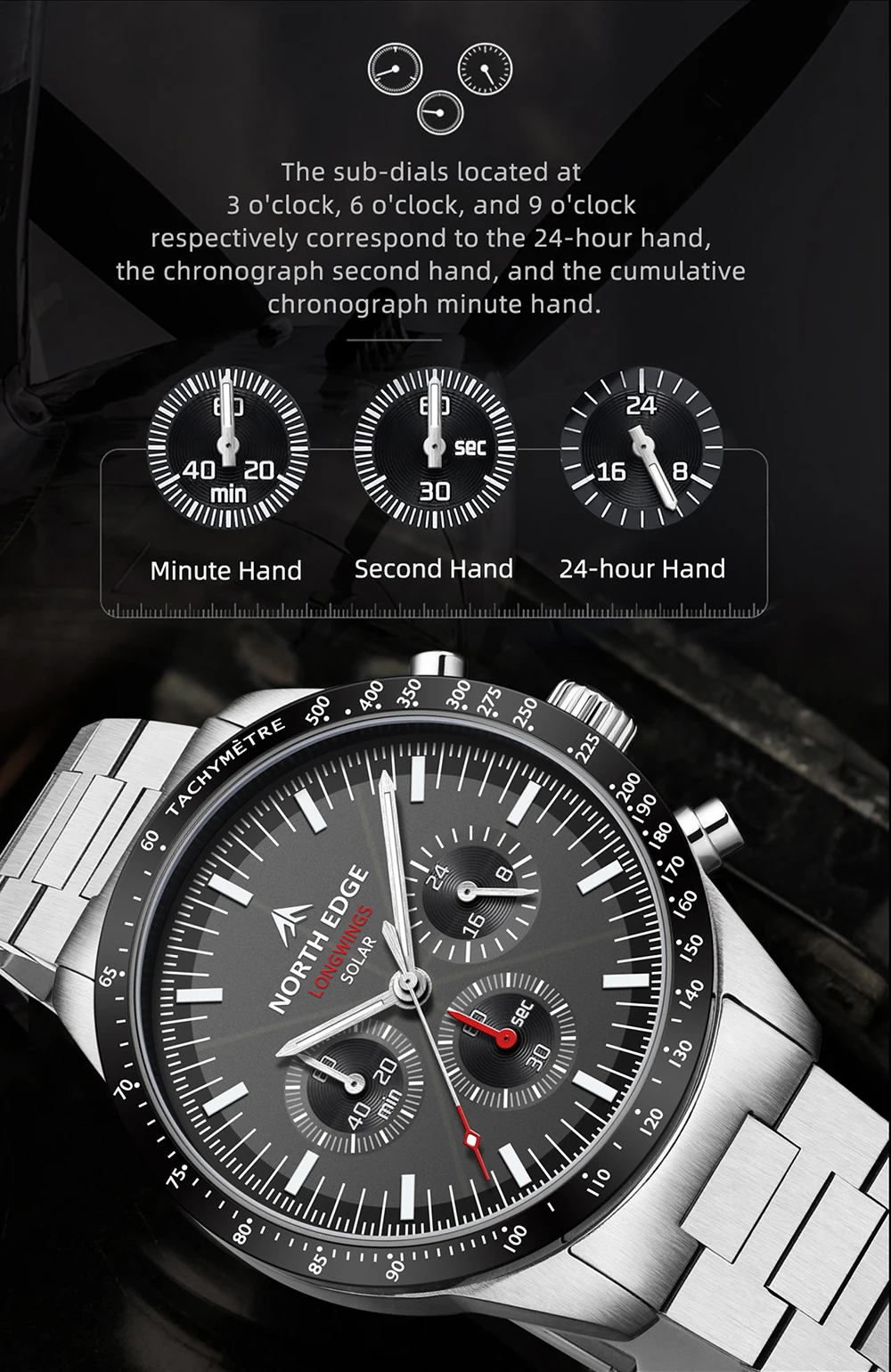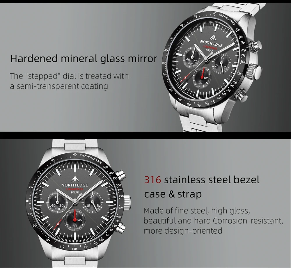 - Feature: Stop Watch,Water-Resistance,Solar,Luminous Hands