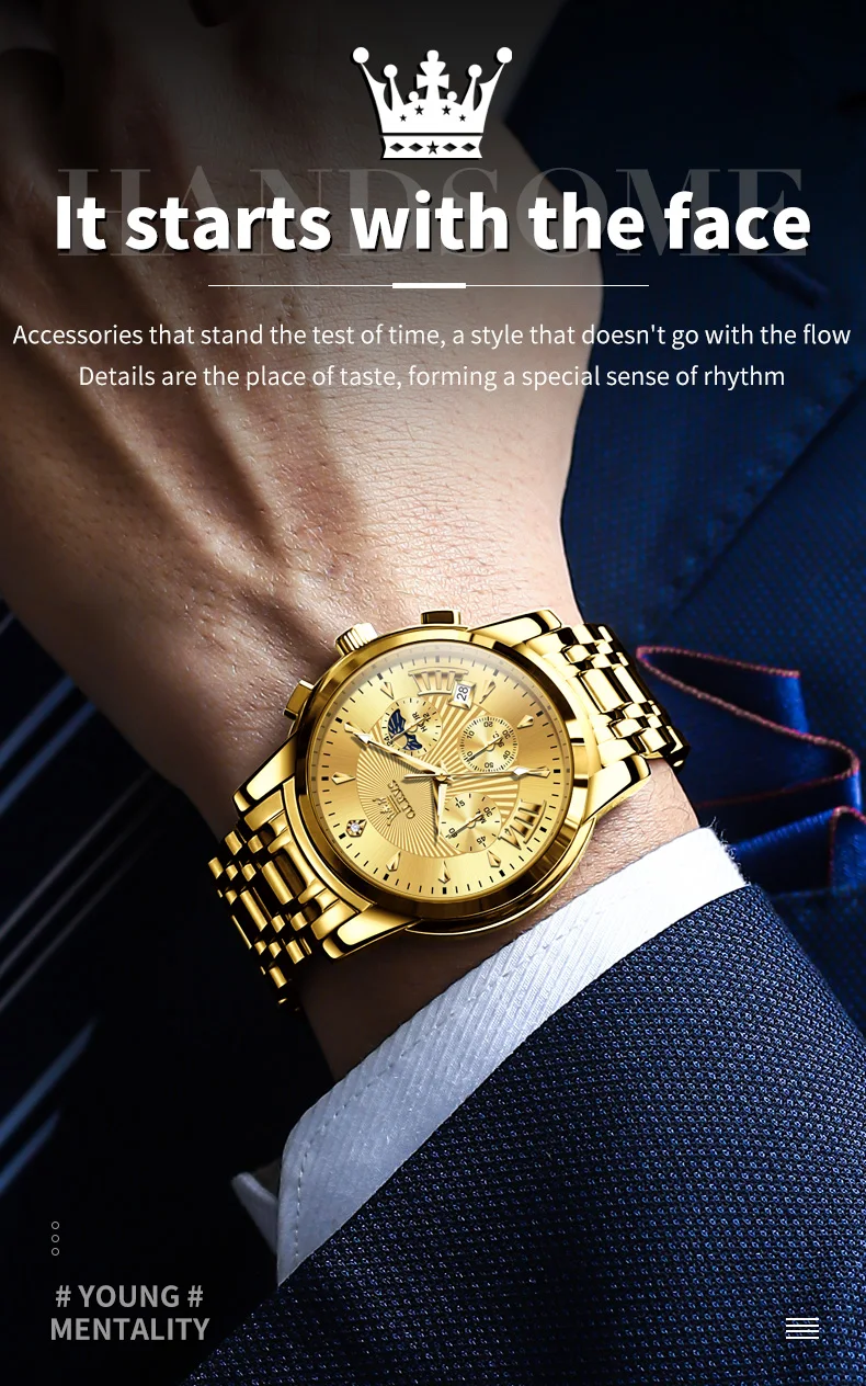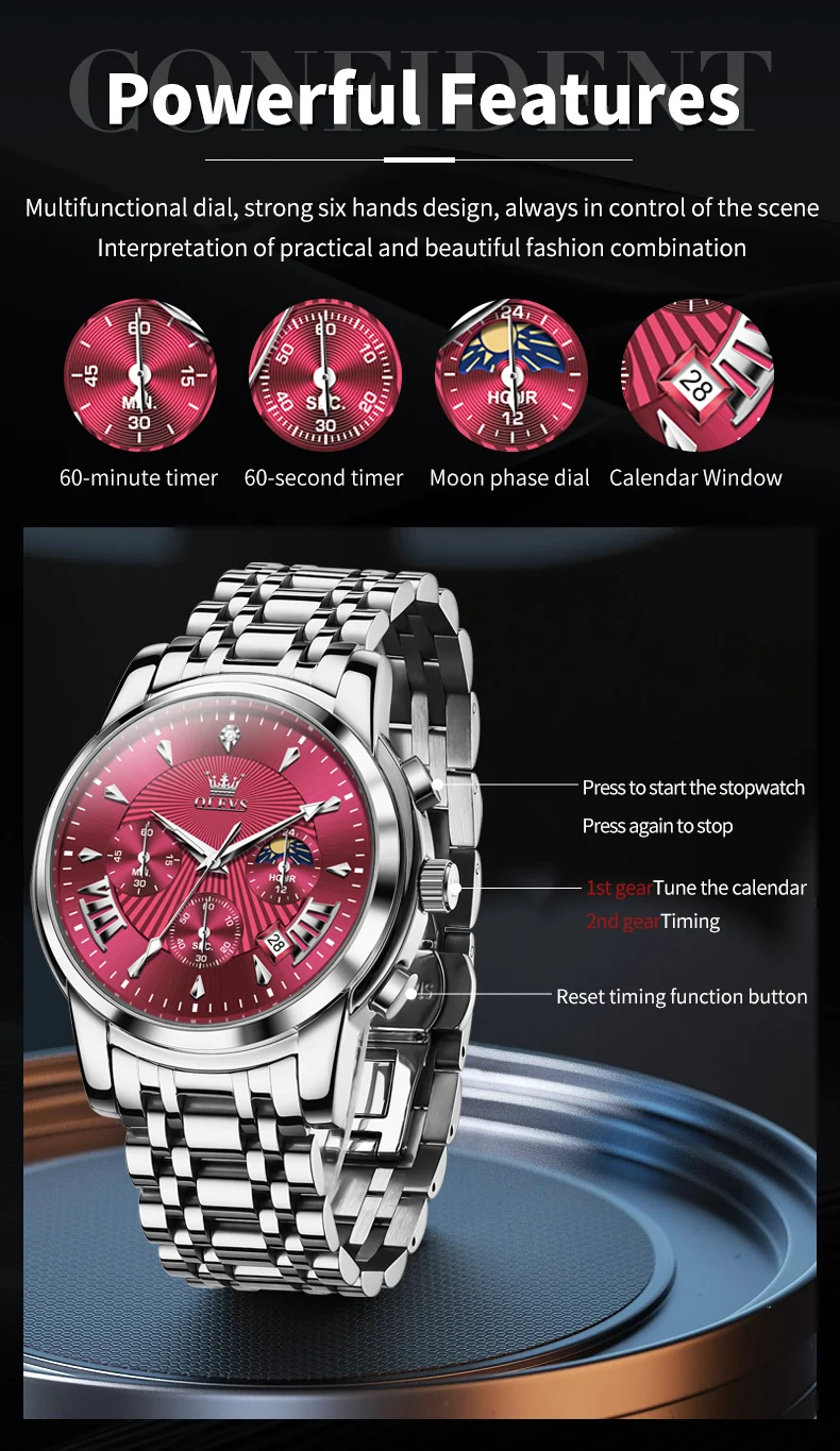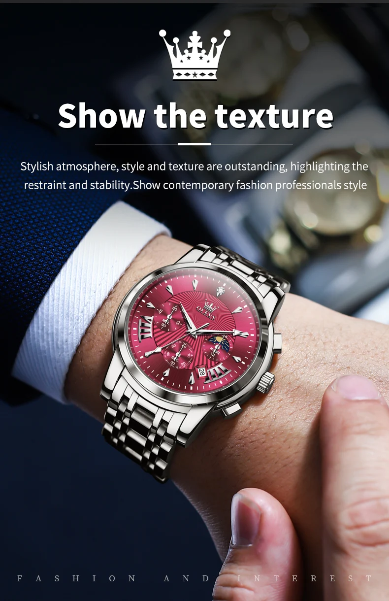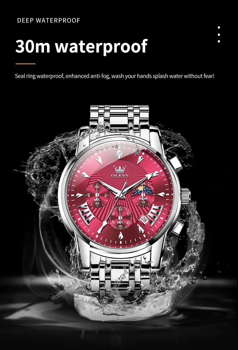 - Feature: Shock Resistant,Luminous,Auto Date,Moon Phase,Water-Resistance