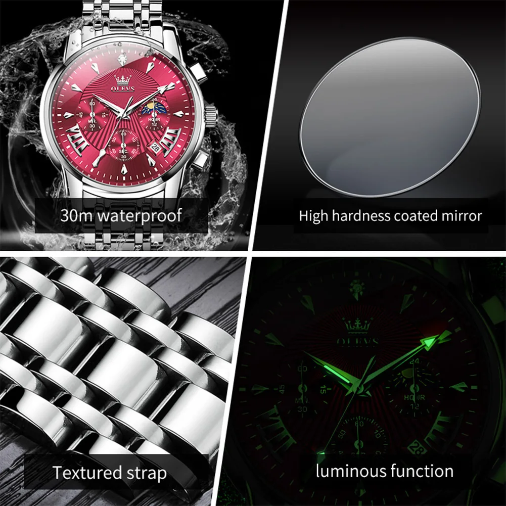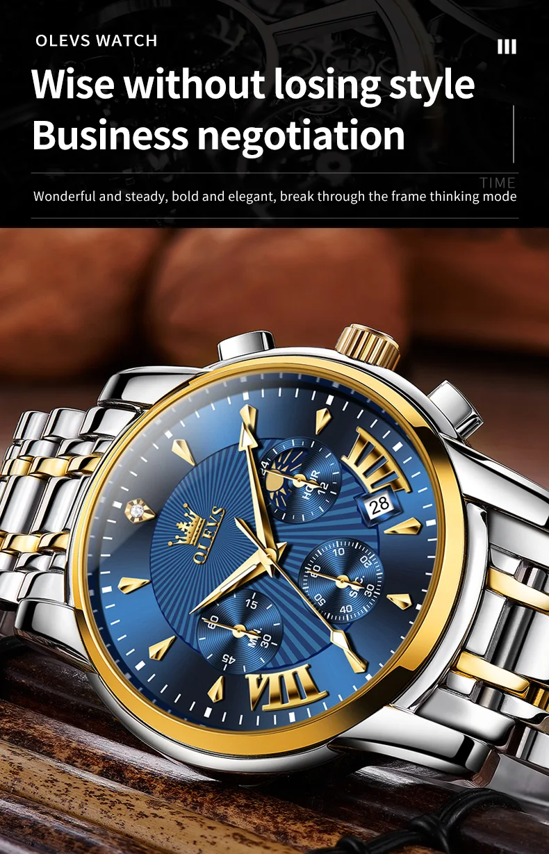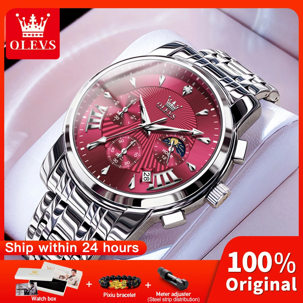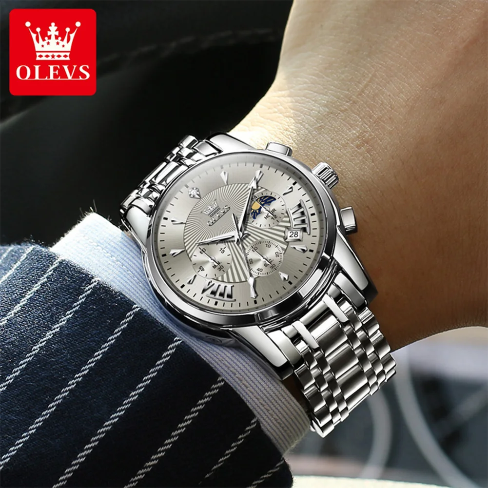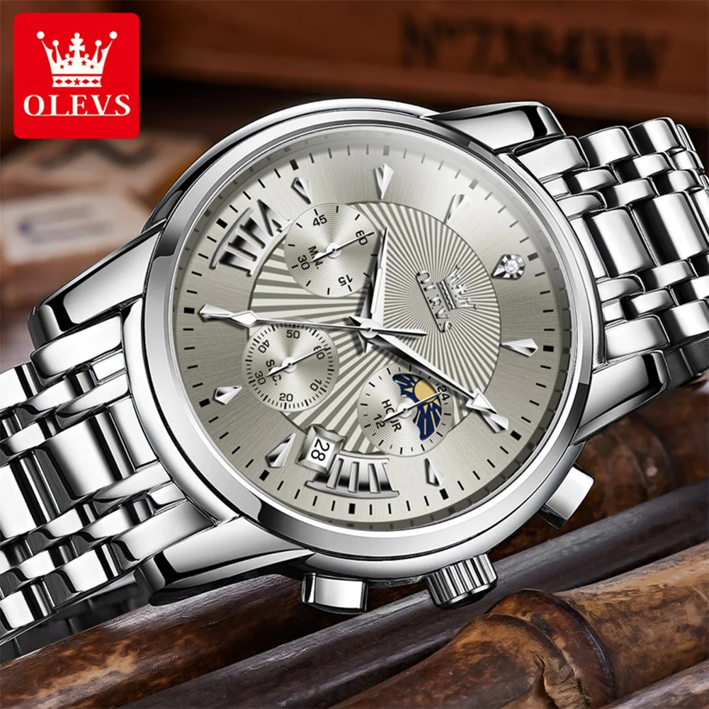 OLEVS Mens Watch Original Business Quartz Watch Moon Phase Multifunctional Chronograph Watches For Men With Box Reloj New