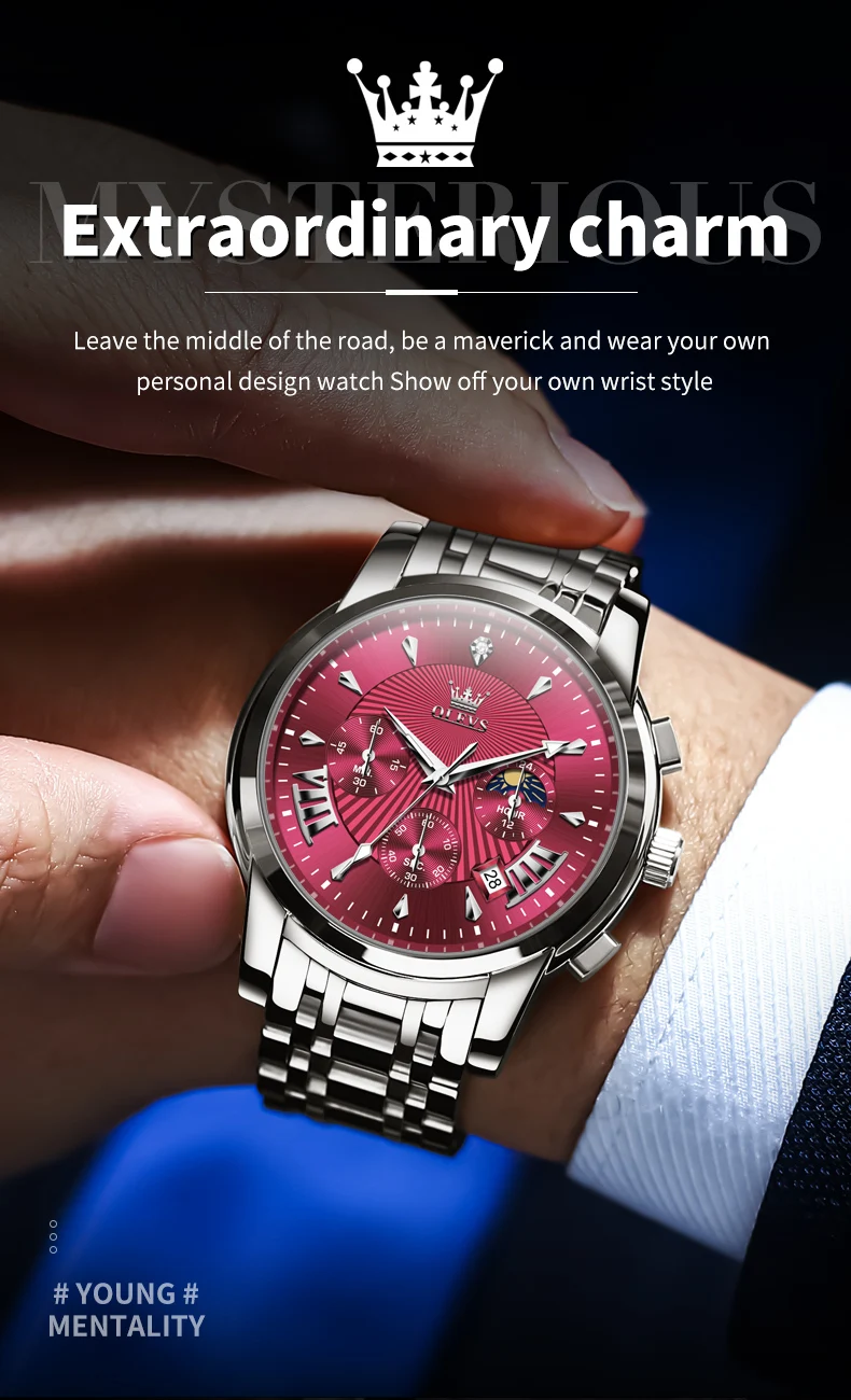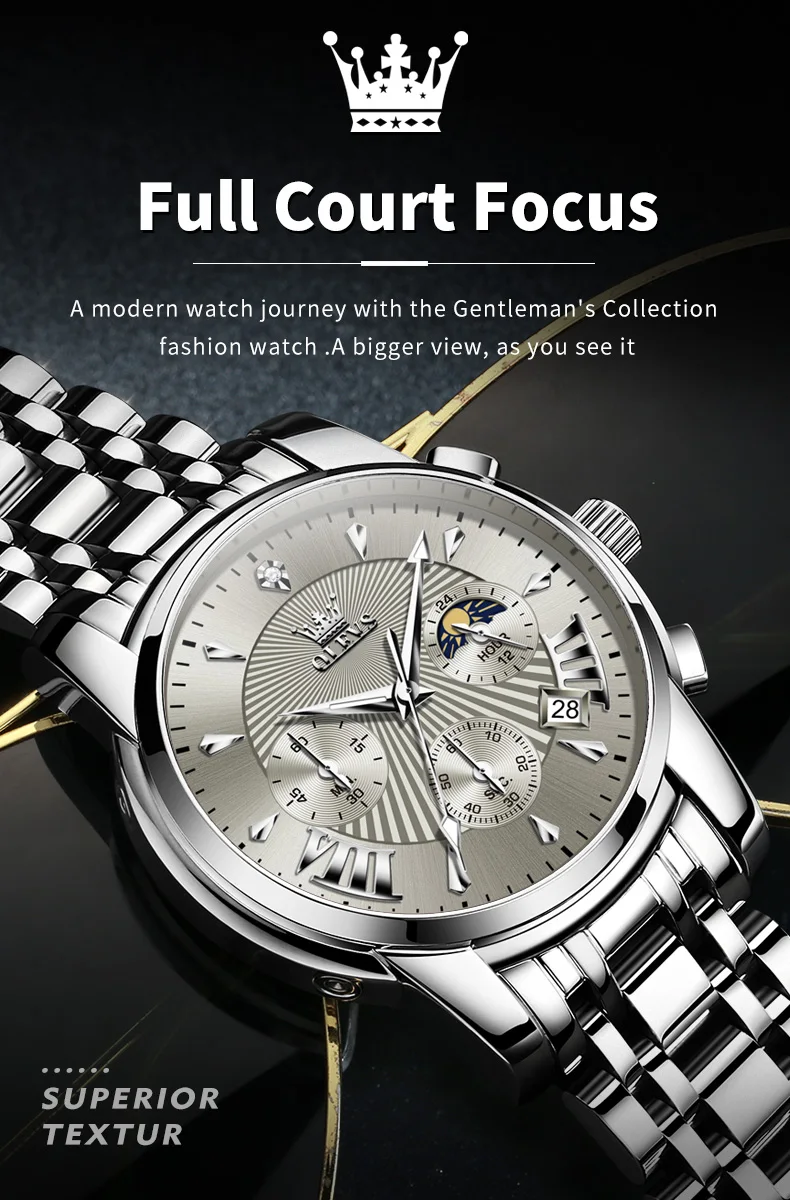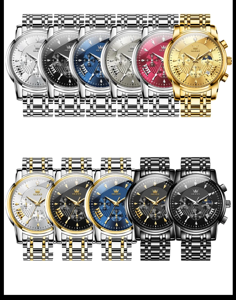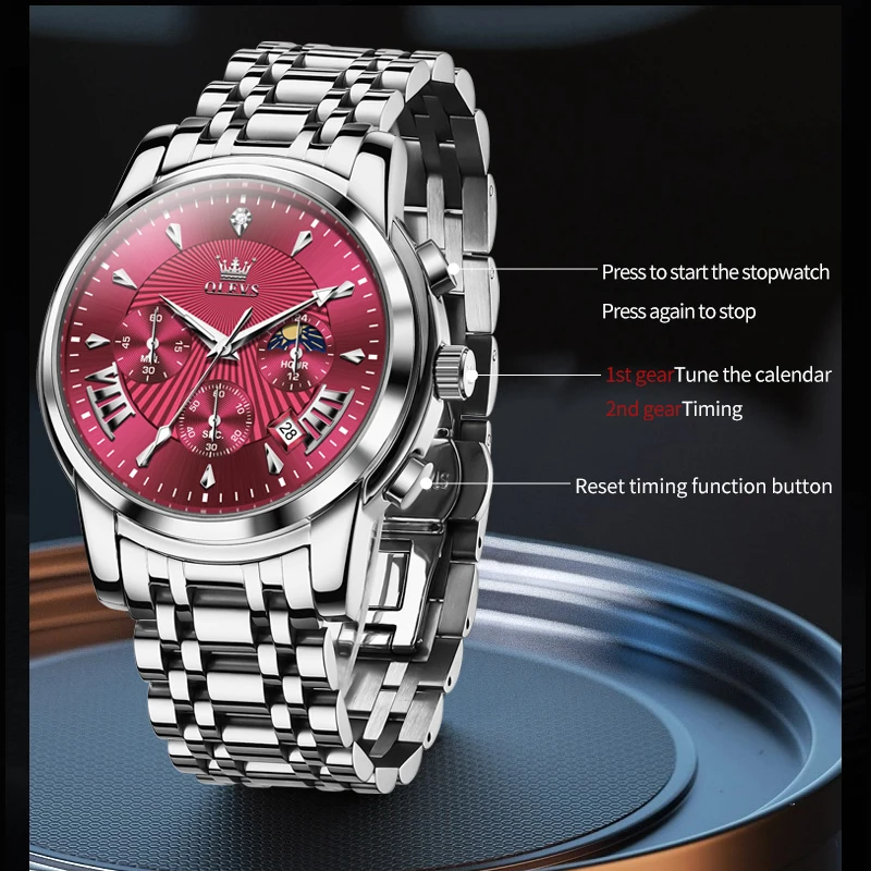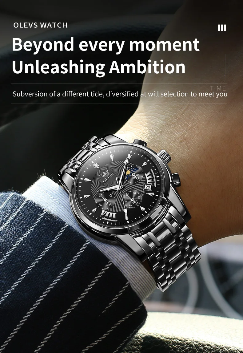 OLEVS Mens Watch Original Business Quartz Watch Moon Phase Multifunctional Chronograph Watches For Men With Box Reloj New
