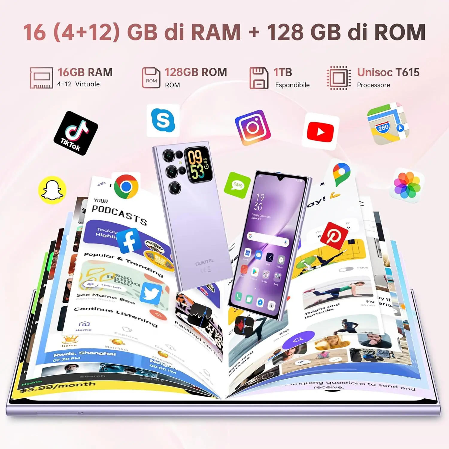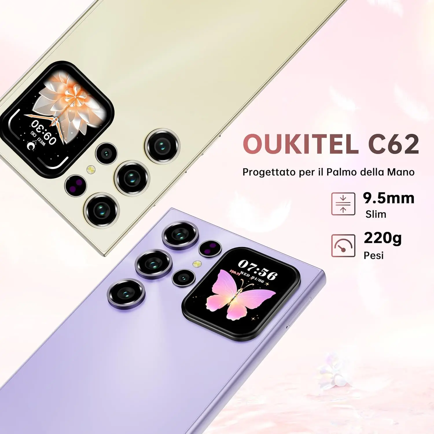 OUKITEL C62 Smartphone Android 15- Display 6.88″ HD+90 Hz con Schermo Posteriore