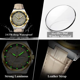 - Feature: Luminous,Auto Date,DIVER,Water-Resistance,swim,Week Display,Luminous Hands