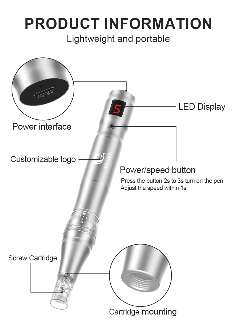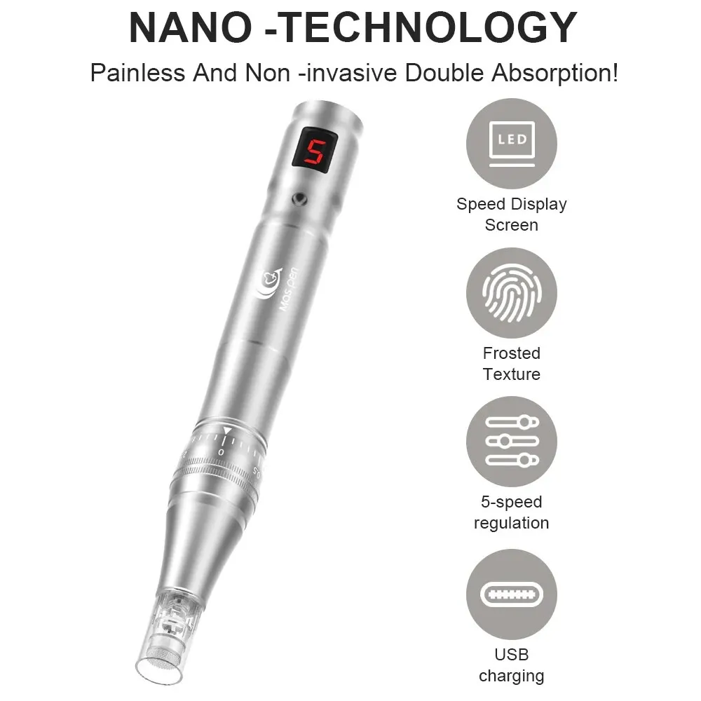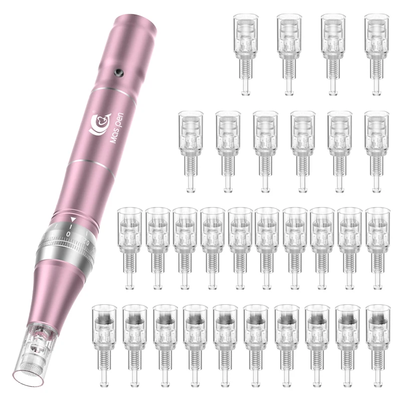 Professional High Frequency And Mute Dermapen Wireless Electric Microneedling Derma Pen With 30 Replaceable Needle Cartridges