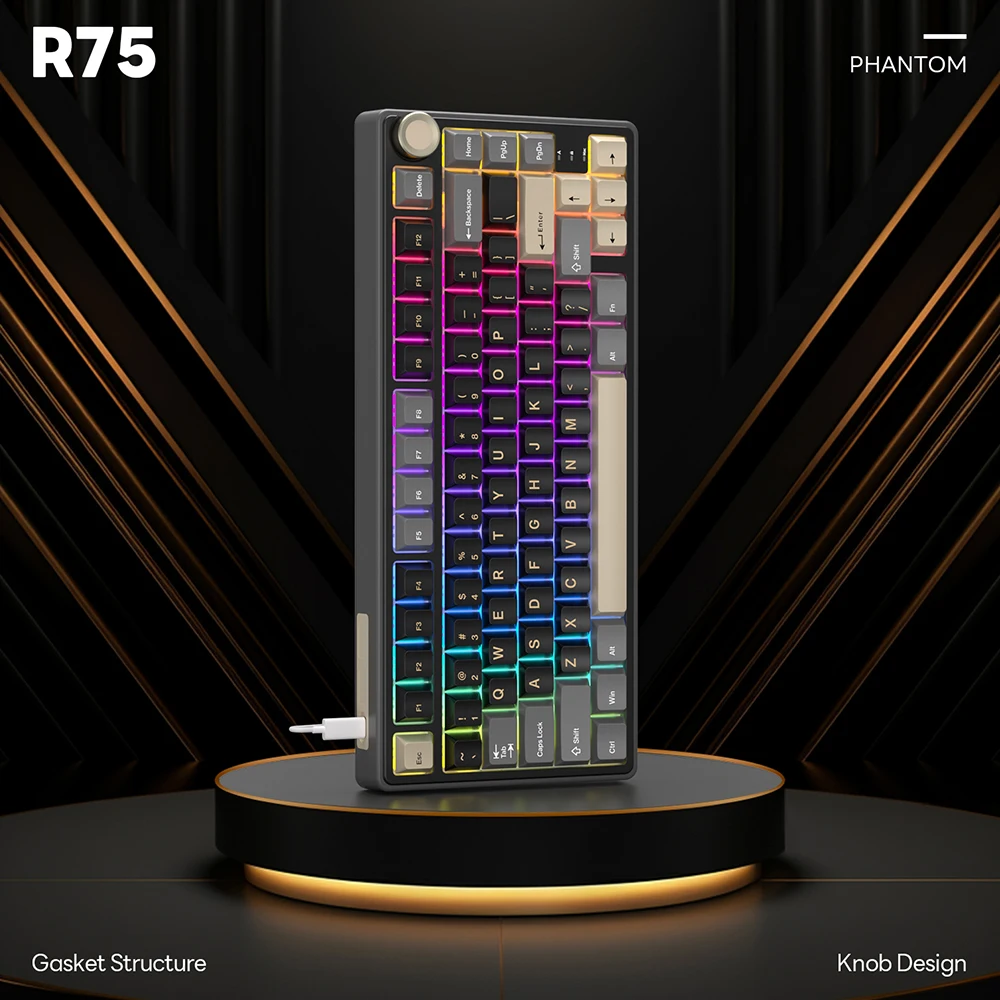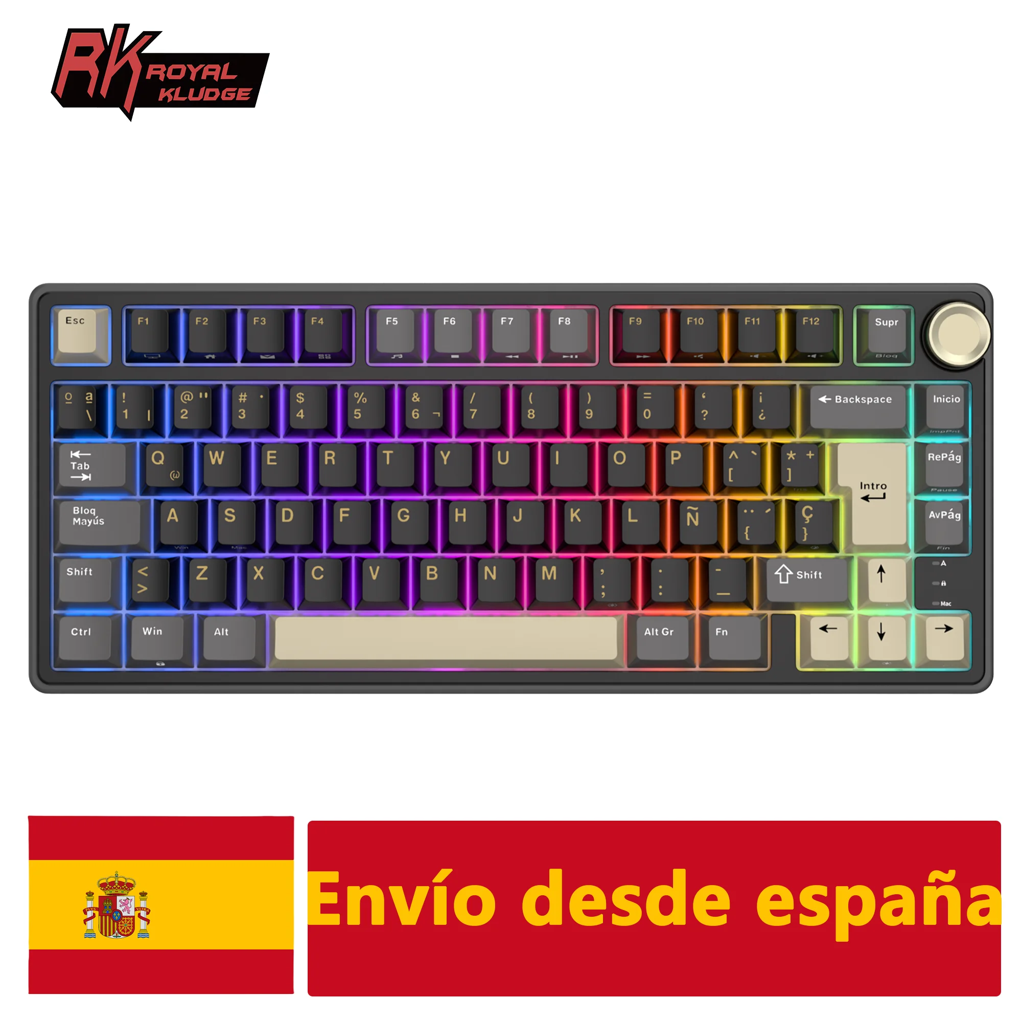 RK Royal Kludge R75 Spanish Mechanical keyboard Gasket 80% Layout RGB Backlit PBT Hot-swappable Gamer keyboard Metal Knob Spain