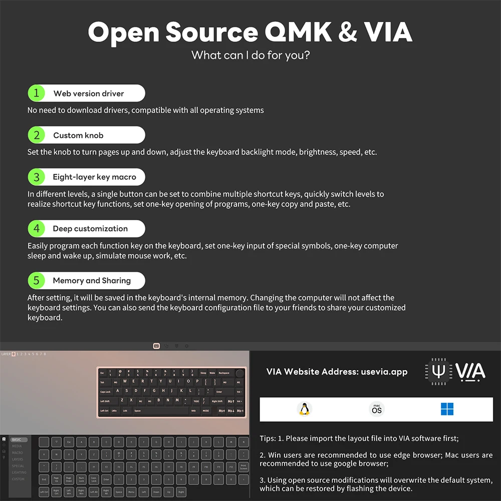 The innovative 80% unique layout differs from traditional TKL keyboards, which cuts more clumsy space off while supporting the same functionality as practical arrow, multimedia and control keys.