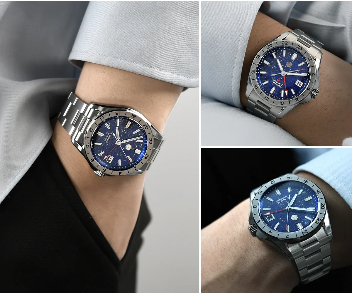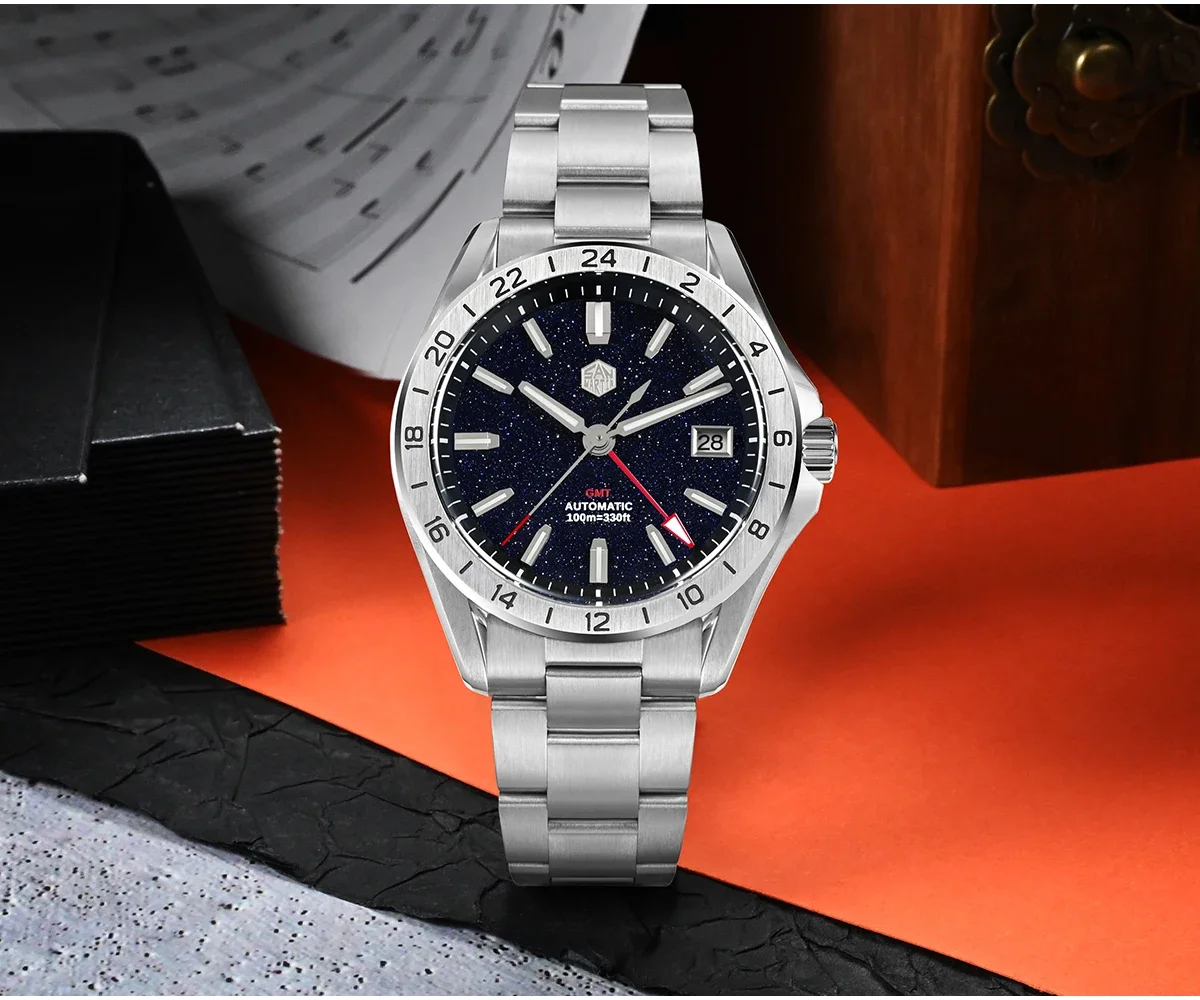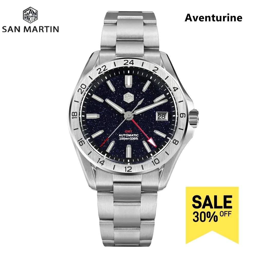 San Martin 39mm Aventurine Gemstone Dial Luxury Men’s Watch NH34 GMT Automatic Mechanical Sapphire Waterproof Luminous SN0129