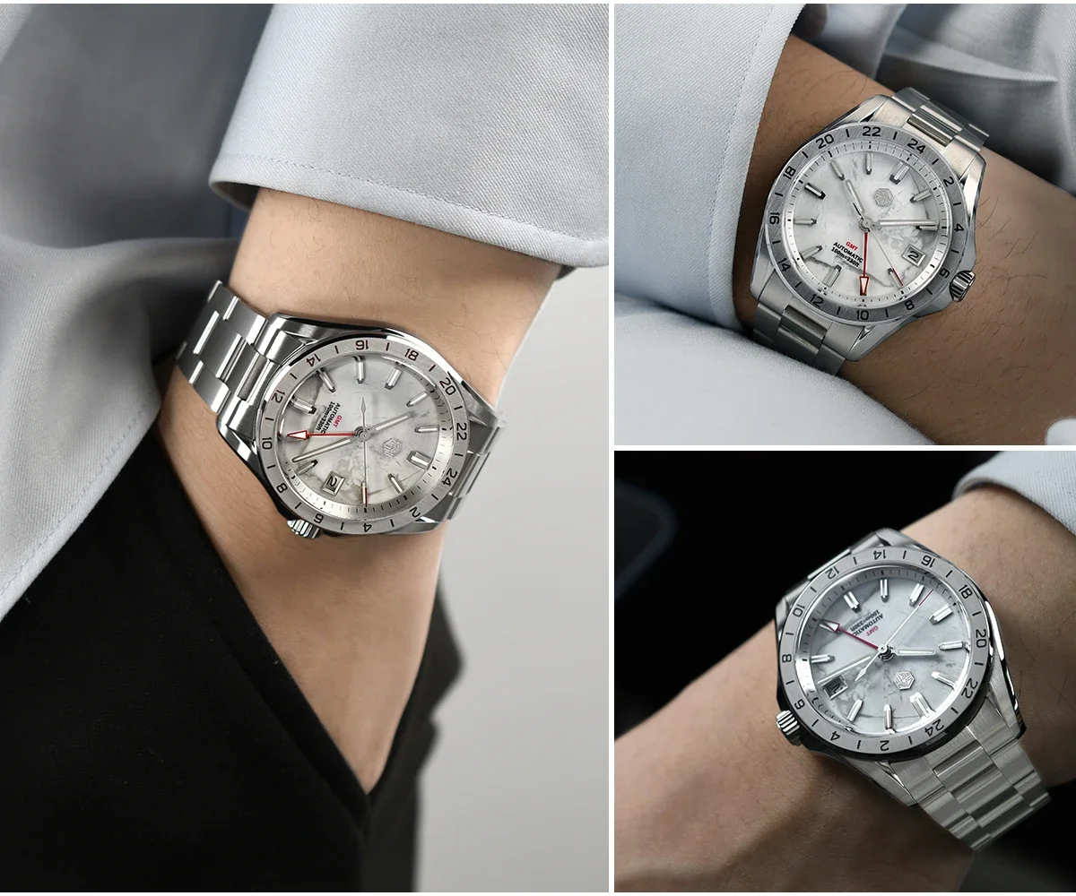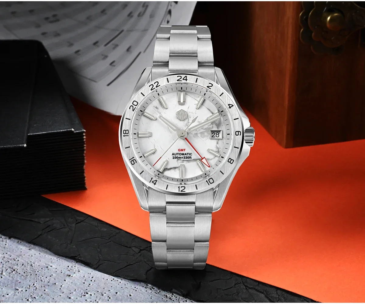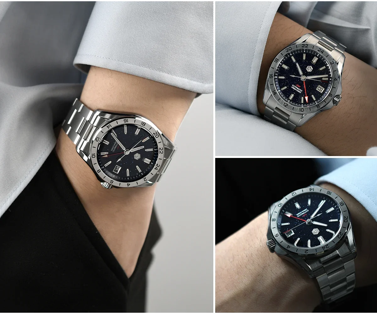 San Martin 39mm Aventurine Gemstone Dial Luxury Men’s Watch NH34 GMT Automatic Mechanical Sapphire Waterproof Luminous SN0129