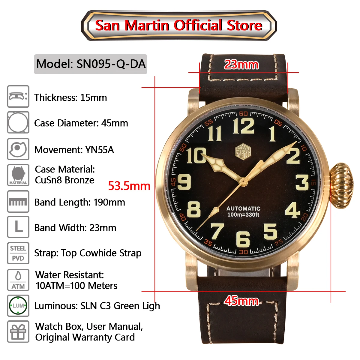 45mm Solid CuSn8 Bronze Pilot’s Watch YN55 & ST3621