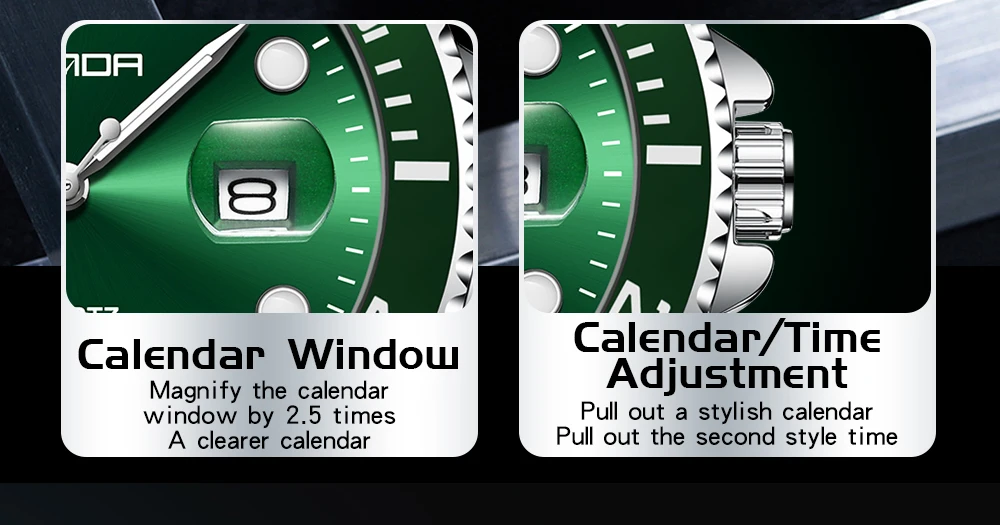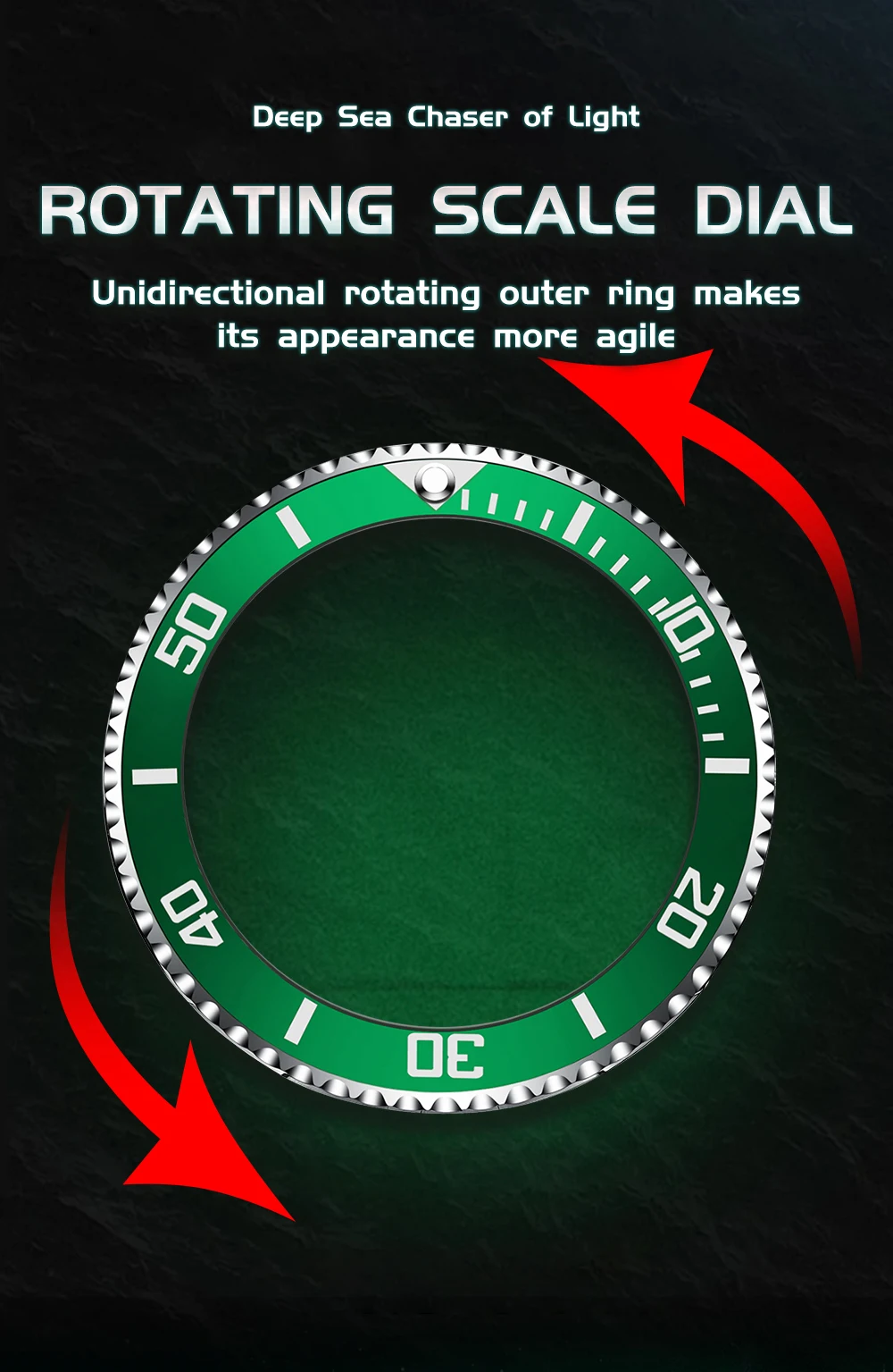 FeatureBack Light,Shock Resistant,Luminous,Auto Date,Complete Calendar,DIVER,Water-Resistance,swimWater Resistance Depth3Bar