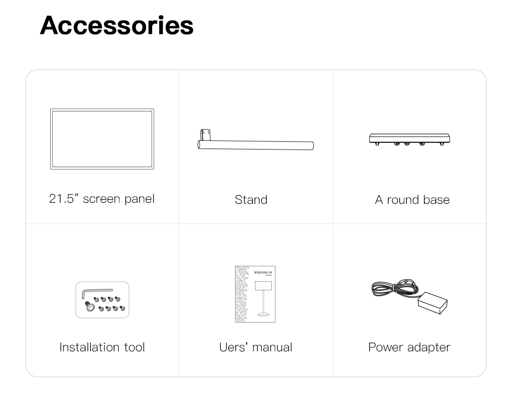 Menu X 1, 12V 2.5A adapter, screws X 12, plastic cover X 1