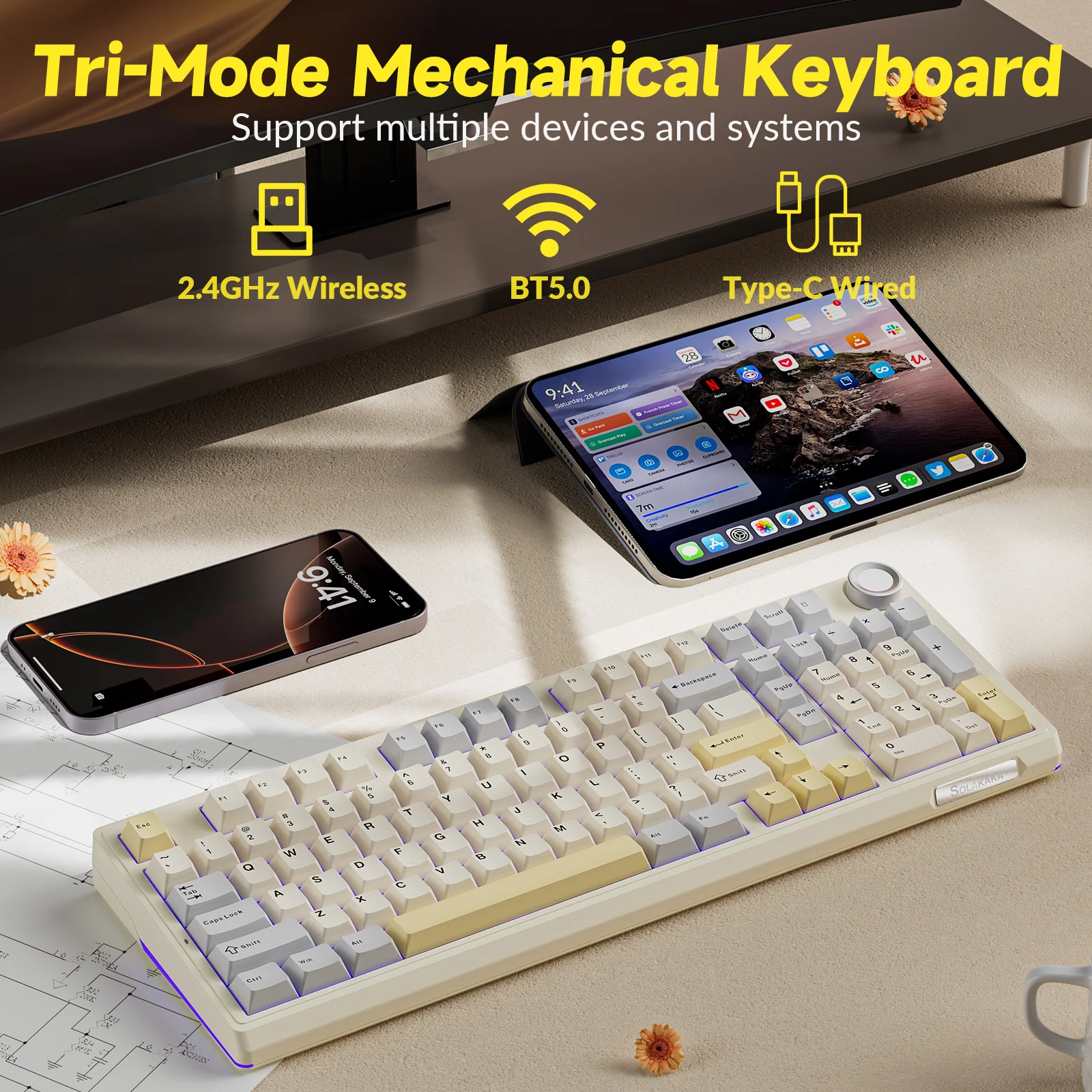 Triple-mode Connect & 10000mAh Long-lasting Battery;