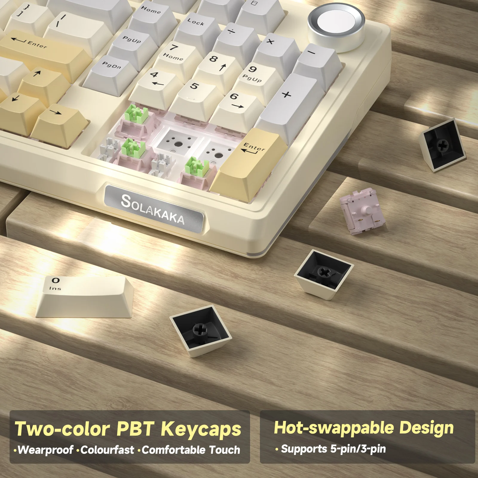 - Keycaps: PBT Keycaps