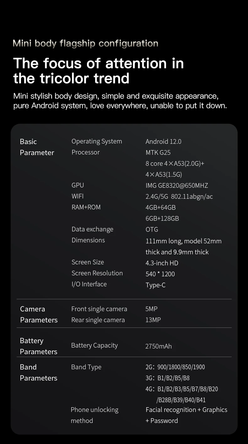 SOYES F9 Max 4G LTE Mini Smartphone Android 12 Octa-Core 4.3 Inch 6GB+128GB Mobile Phone 2750mAh Type-C OTG Small Phone Face ID