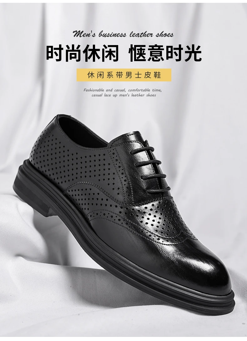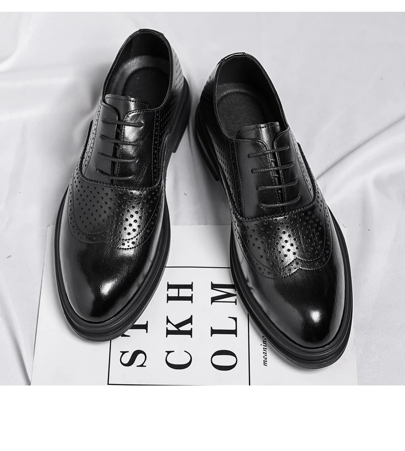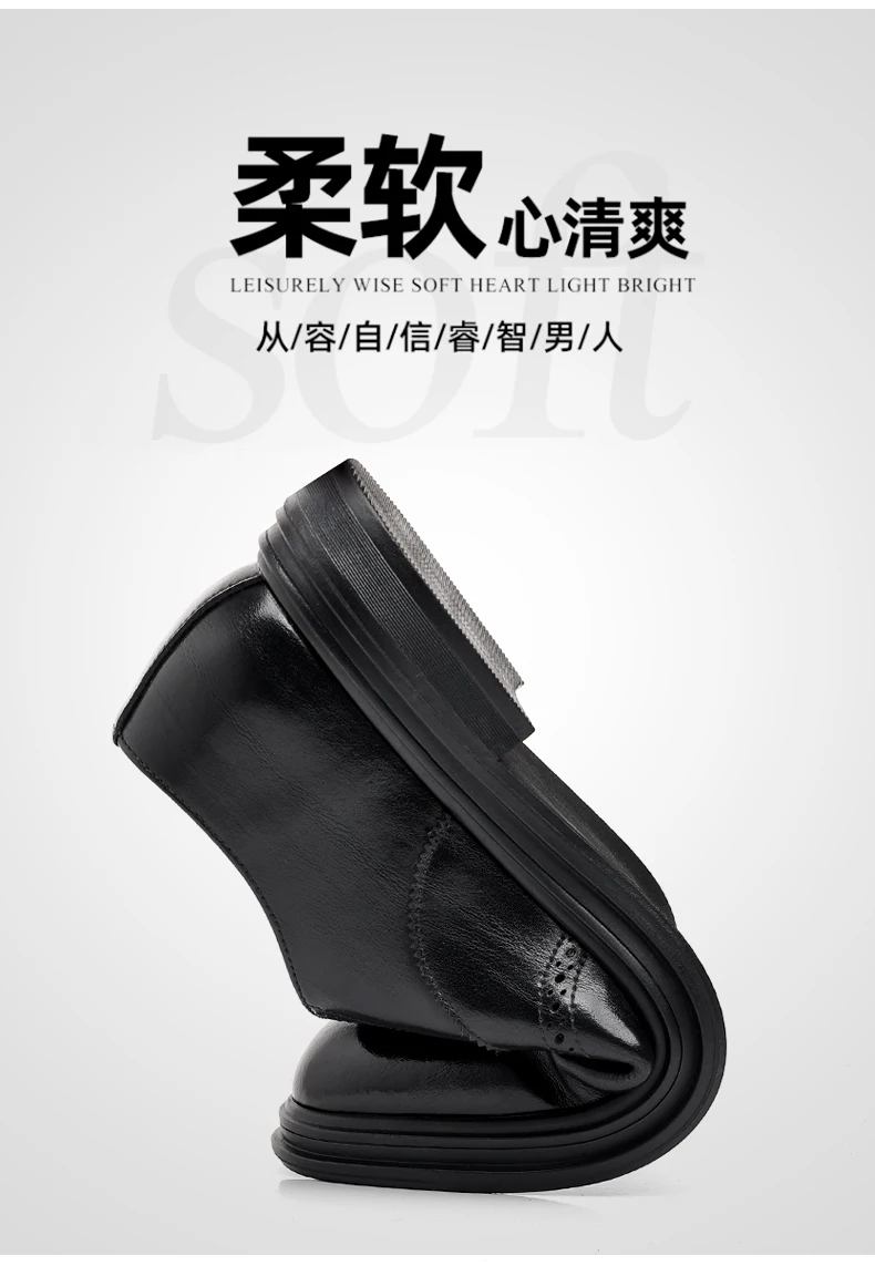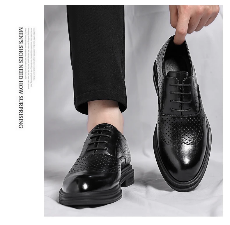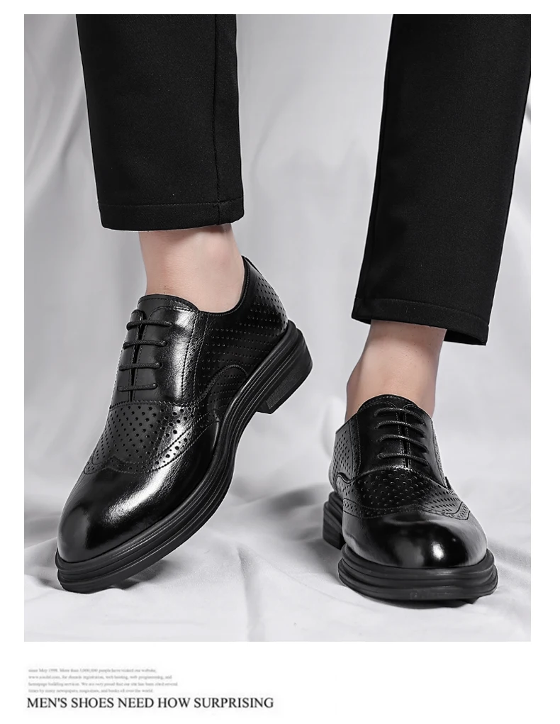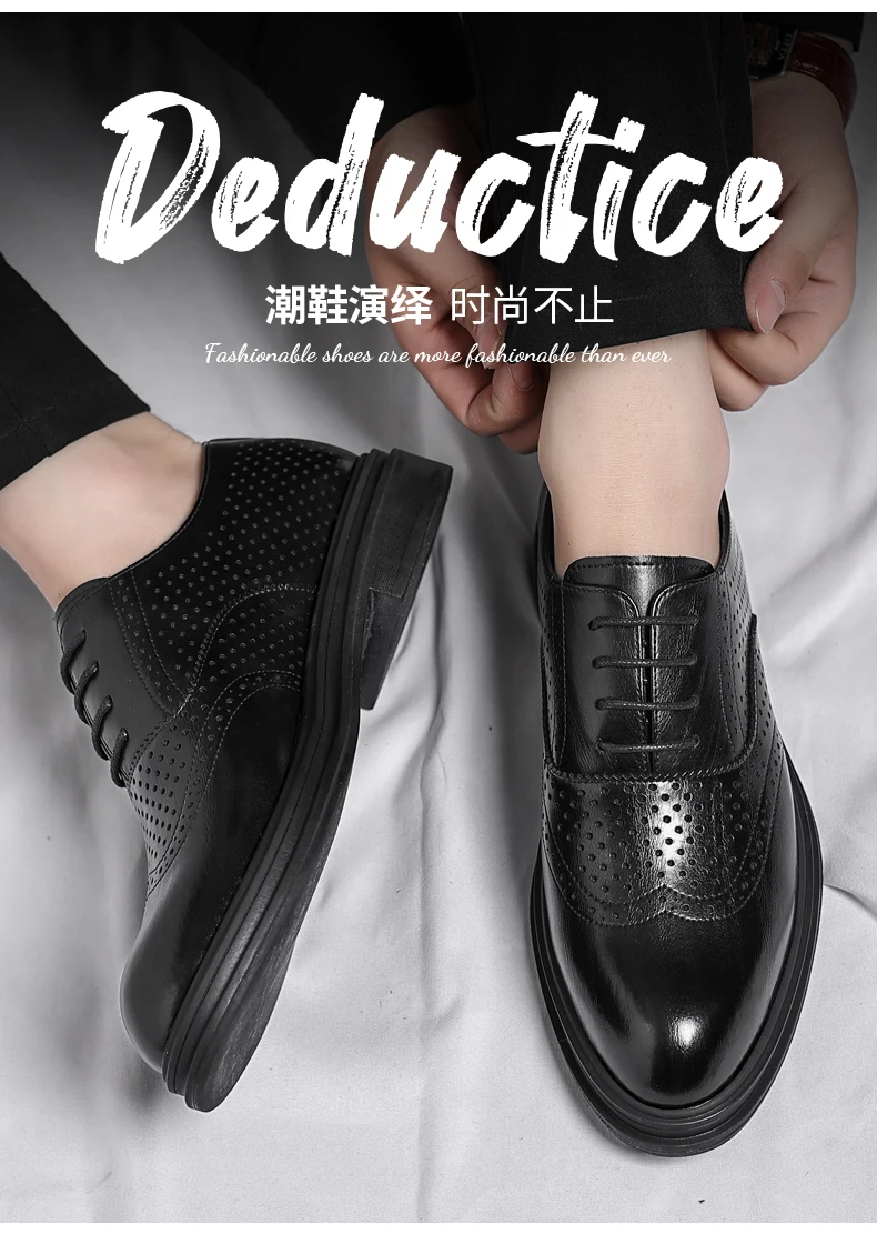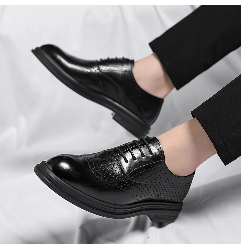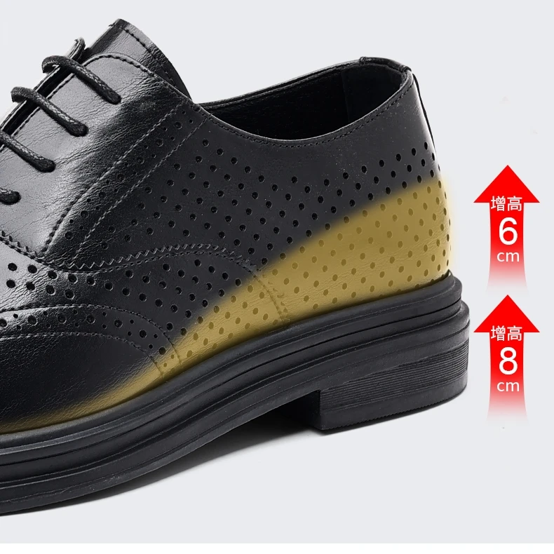 Spring Summer Men Hollow Platform High Heel 6/8 CM Height Growth Formal Men Derby Leather Shoes Man Wedding Dress Elevator Shoes