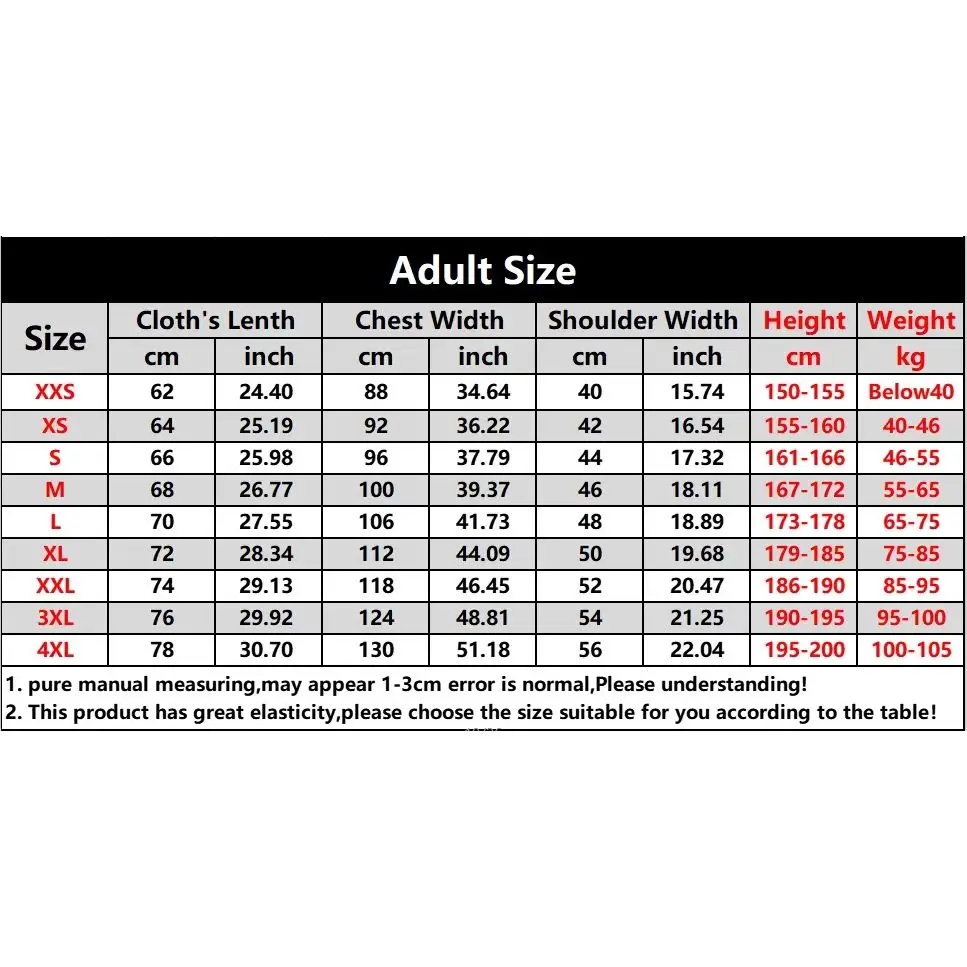 Size:XXS、XS、S、M、L、XL、2XL、3XL、4XL