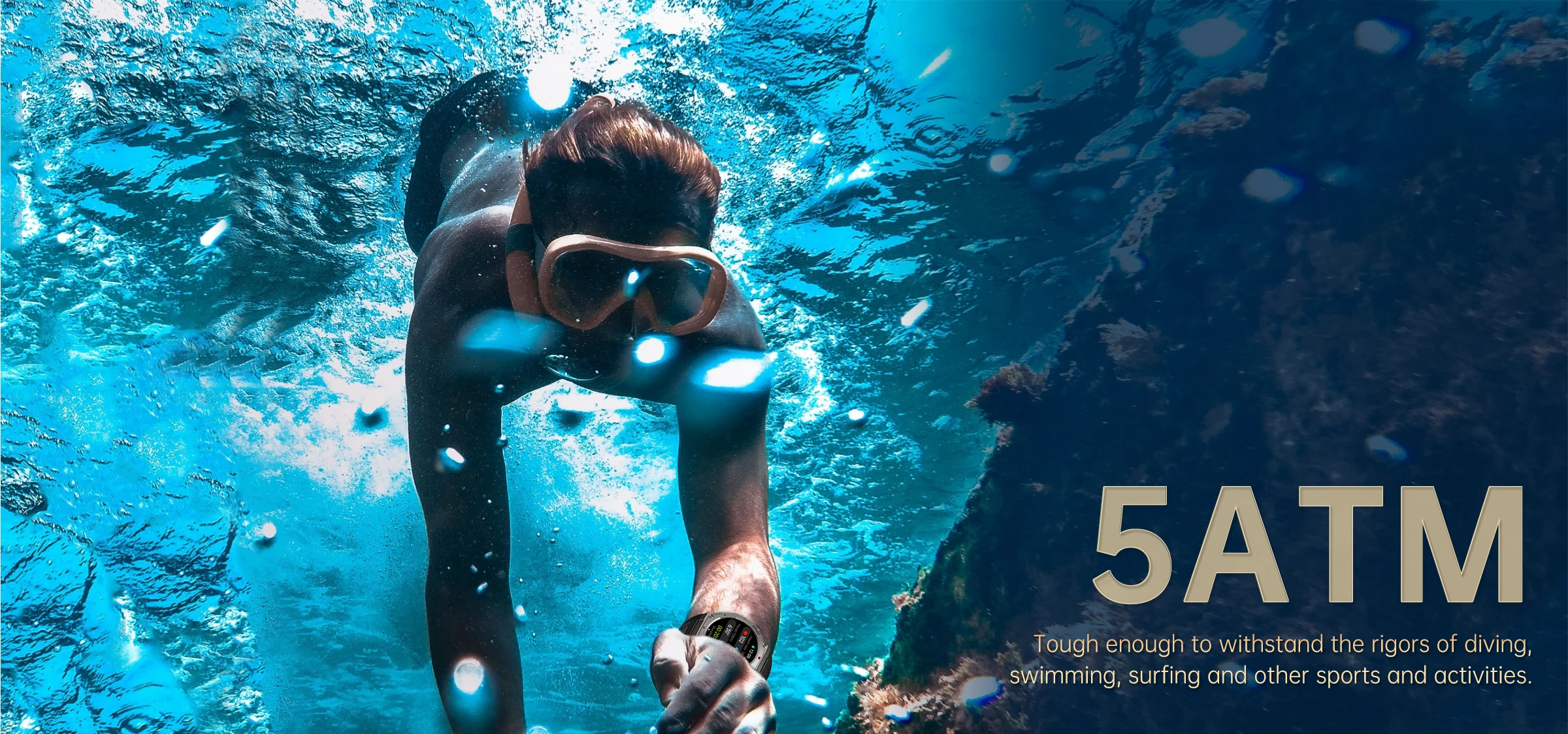 - smart watches function 2: 5ATM/IP69K professional diving swimming smart watch