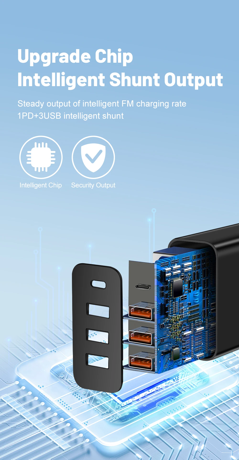 • Multiple Ports :Features three USB ports, including one Type-C port, to charge multiple devices at once.