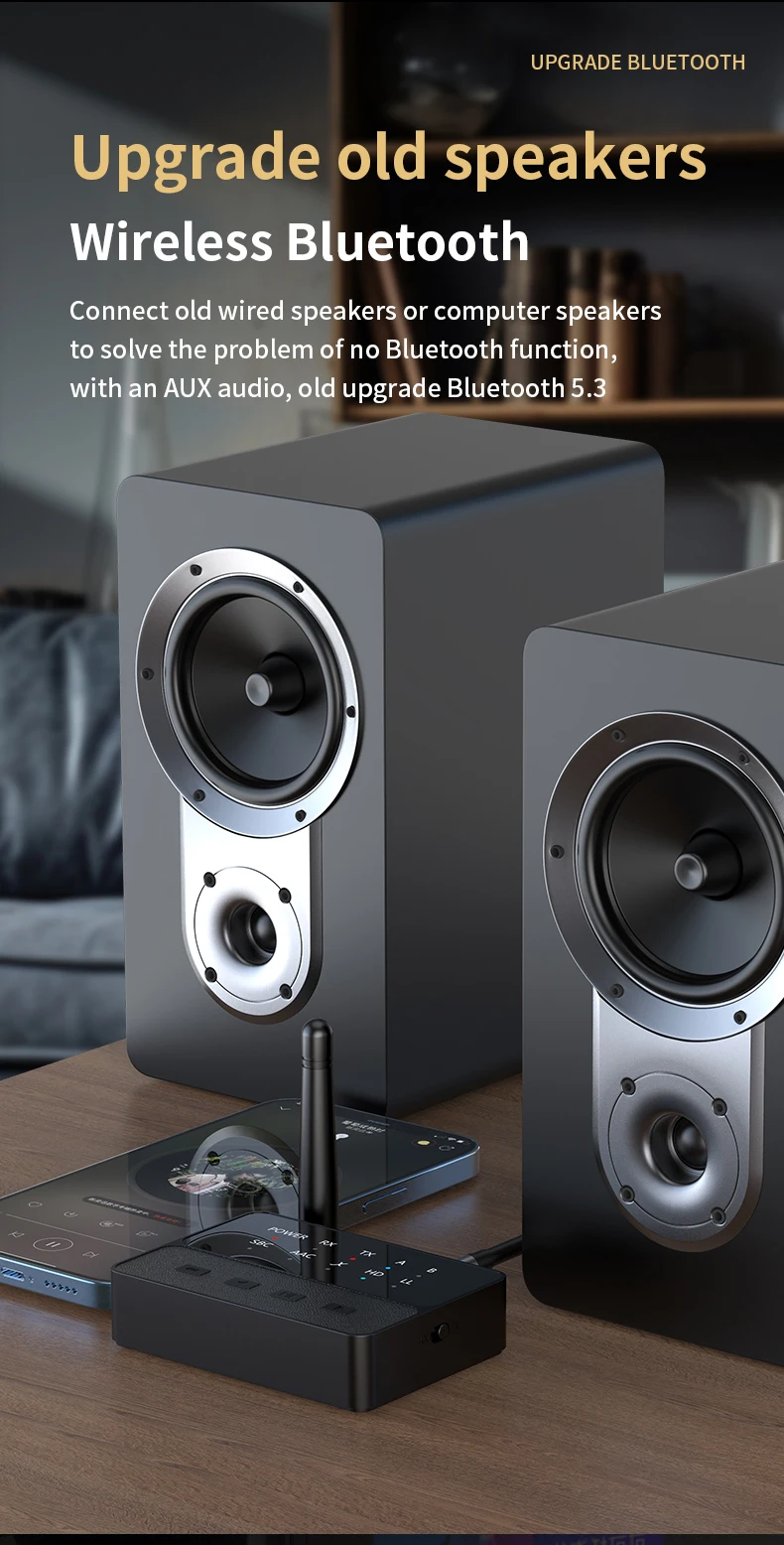 - Feature 1: 2 In 1 Bluetooth 5.3 Audio Transmitter Receiver Aptx HD Low Latency 3.5mm AUX Wireless Adapter for TV PC Car Speaker 2 Headphone