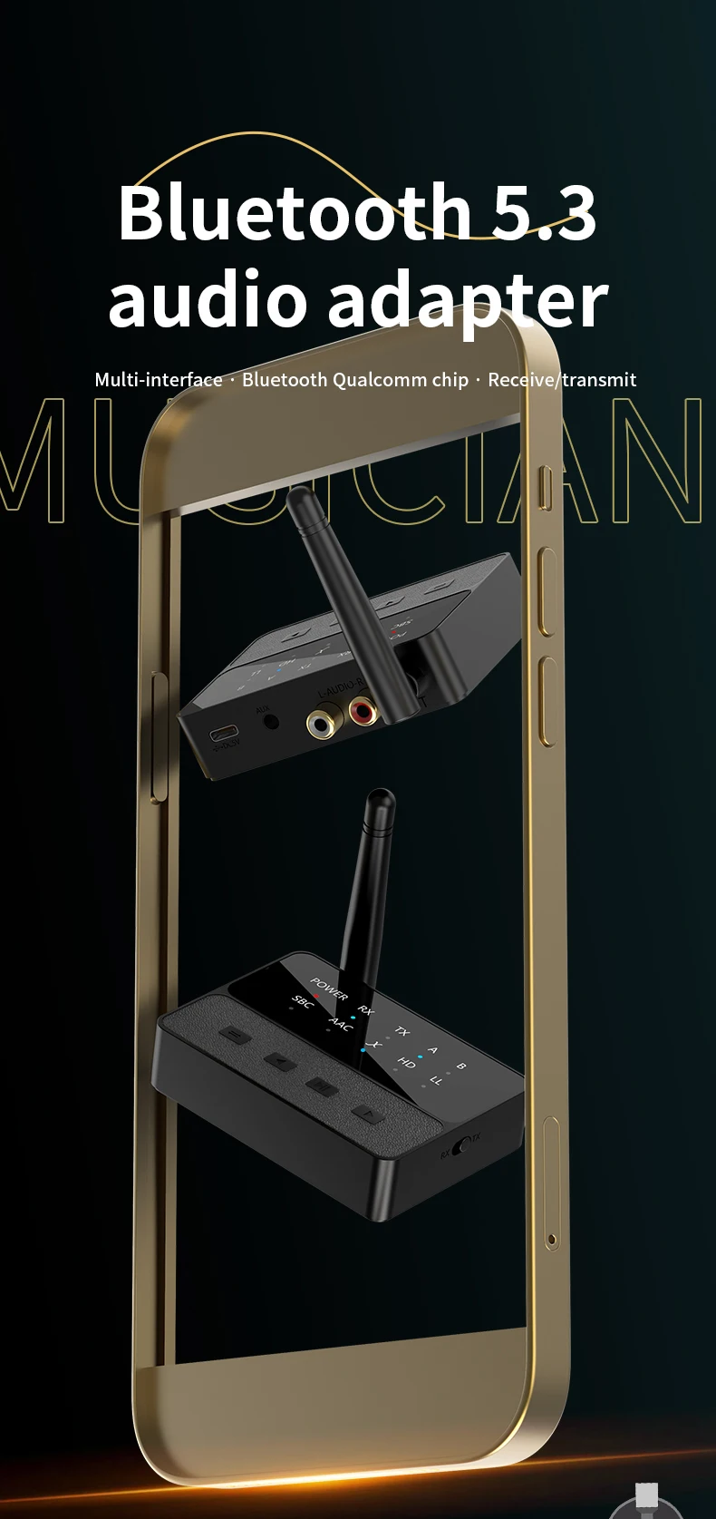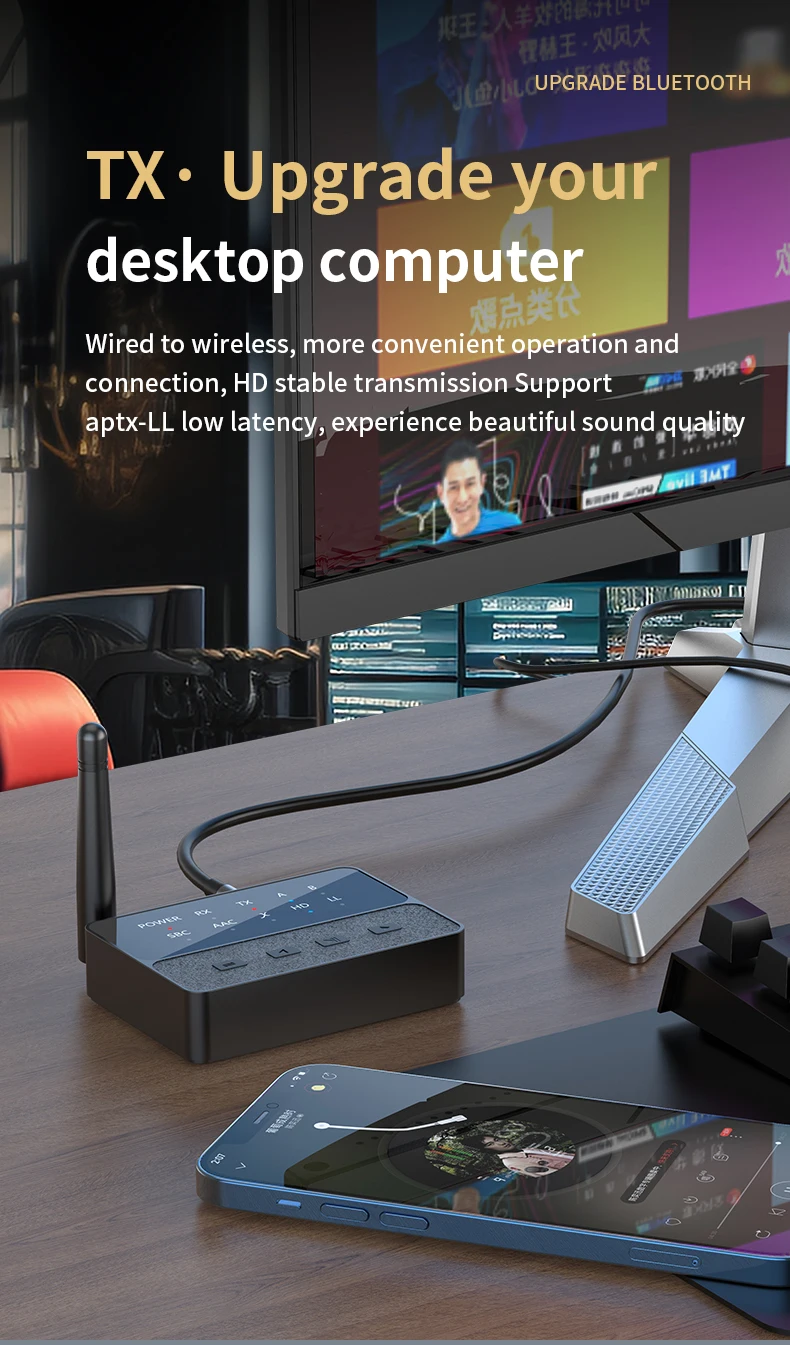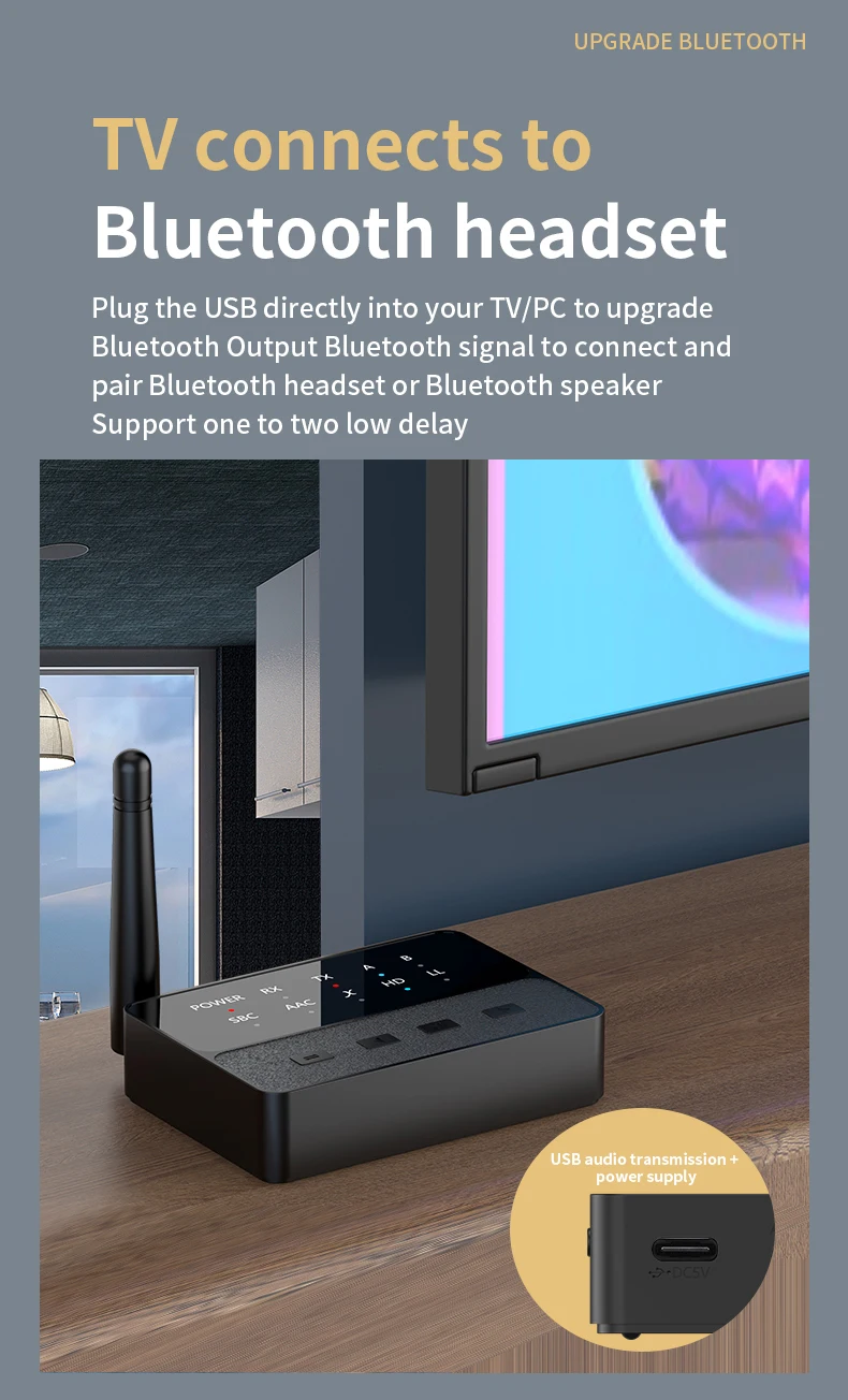 - Feature 2: aptX HD/LL Bluetooth Audio Transmitter Receiver 3.5MM AUX Type-C Multi-point Dual Stream CD-Quality Hifi Music Wireless Adapter