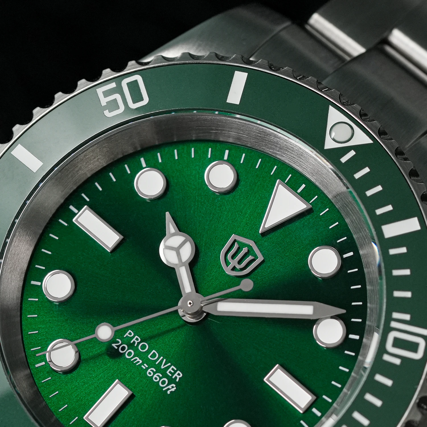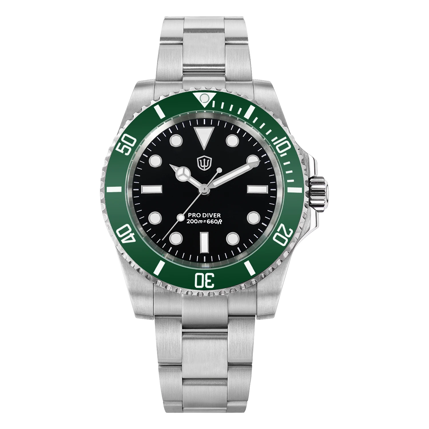 Watchdives WD1680Q V2 Green Dial Quartz Watches VH31 Sweep Second Movement Sapphire 200M Waterproof Stainless steel WristWatch For Men