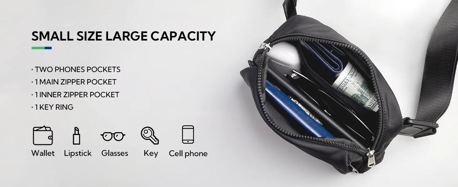 KEEP EVERYTHING ORGANIZED: Personalized zippers main body pocket keeps essentials at hand, which built-in one inner pocket for small items and a keyring. So it fits all of your stuff phone, glasses, credit card, keys, bus pass, all while being compact