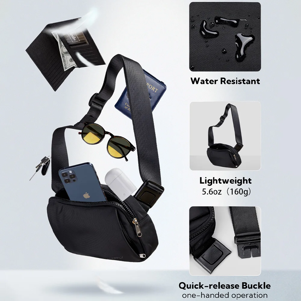 ONE-HANDED QUICK-RELEASE BUCKLE: The quick-release buckle is designed for one-handed operation, offering ease and convenience. The square belt bag is durable and water-resistant. Made from lightweight, tight-knit nylon fabrics, only 5.6 oz