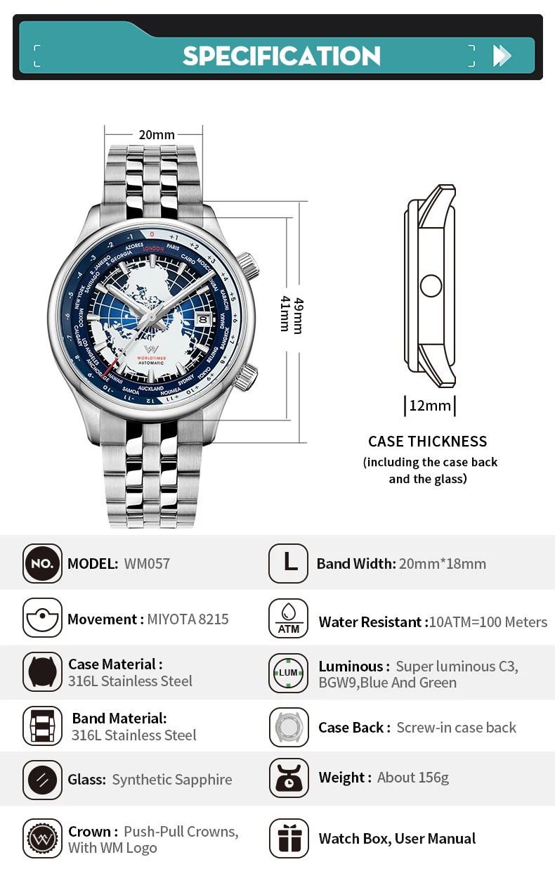 - Feature: Luminous,Shock Resistant,Multiple Time Zone
