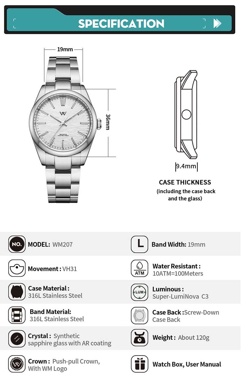 - Case Thickness: 9.4mm