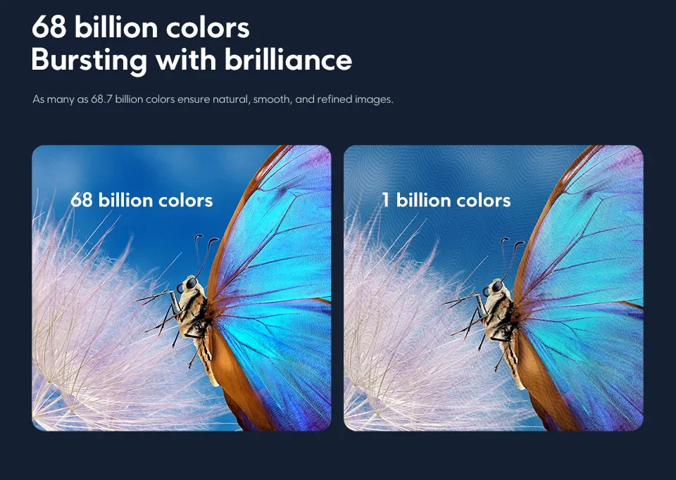 As many as 68.7 billion colors ensure natural, smooth, and refined images.