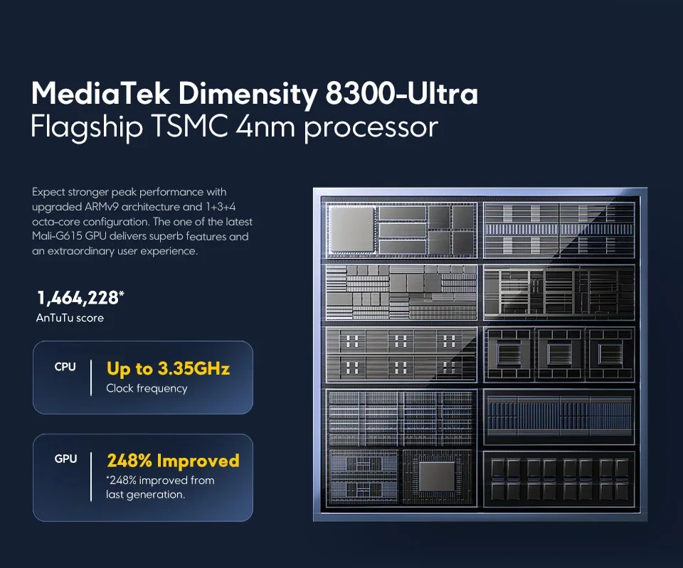CPU ————- Flagship MediaTek Dimensity 8300-Ultra Octa-core processor