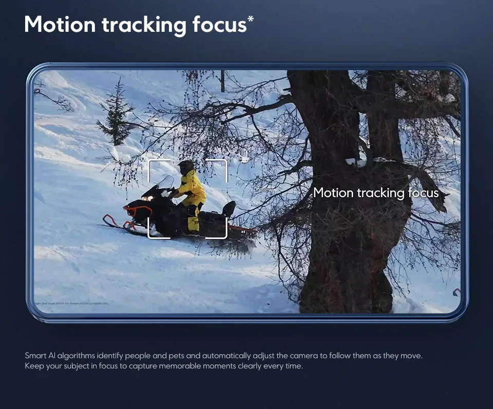 Smart AI algorithms identify people and pets and automatically adjust the camera to follow them as they move.