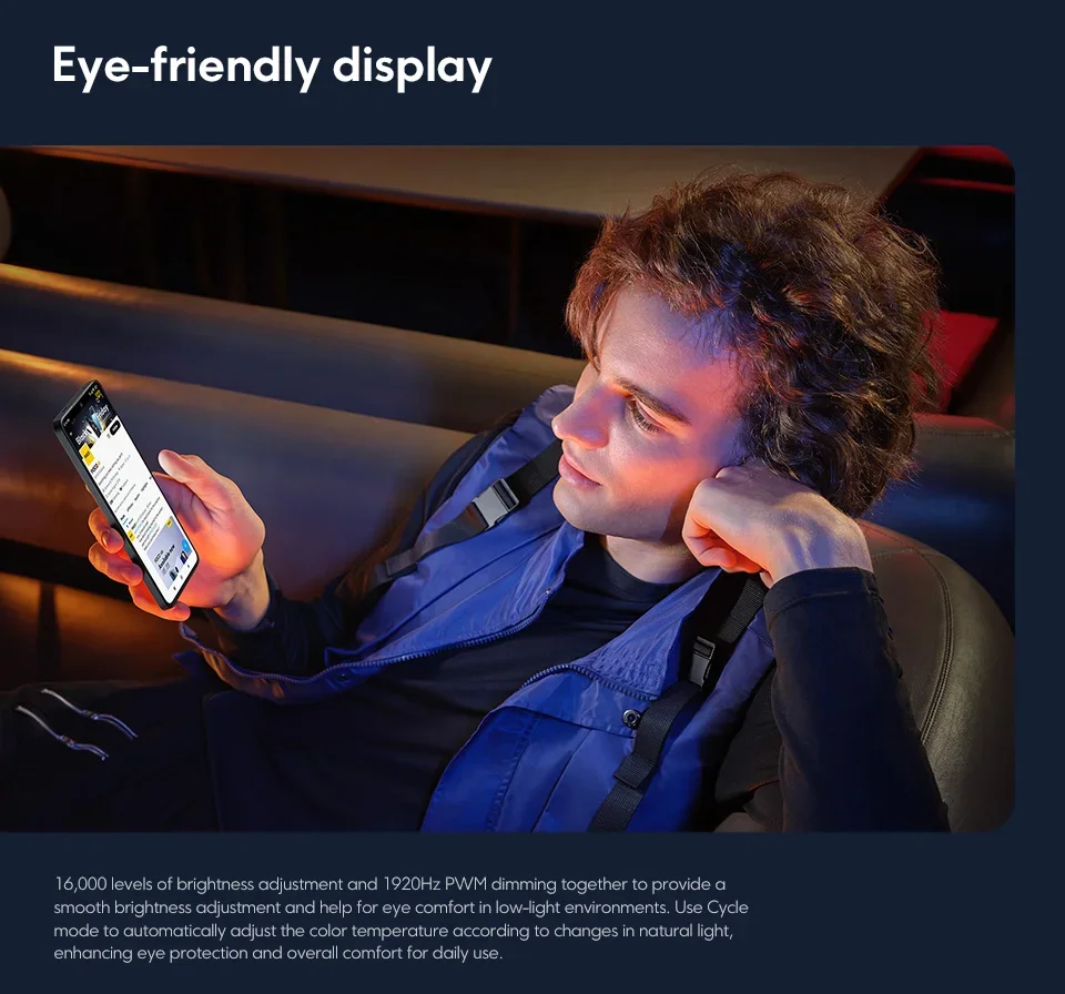 16,000 levels of brightness adjustment and 1920Hz PWM dimming together to provide a smooth brightness adjustment and help for eye comfort in low-light environments. Use Cycle mode to automatically adjust the color temperature according to changes in natural light, enhancing eye protection and overall comfort for daily use.